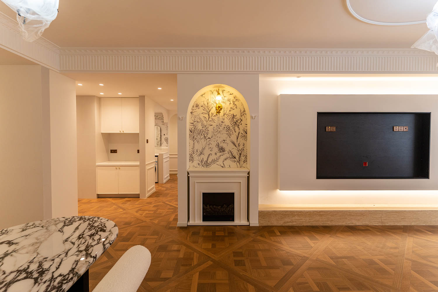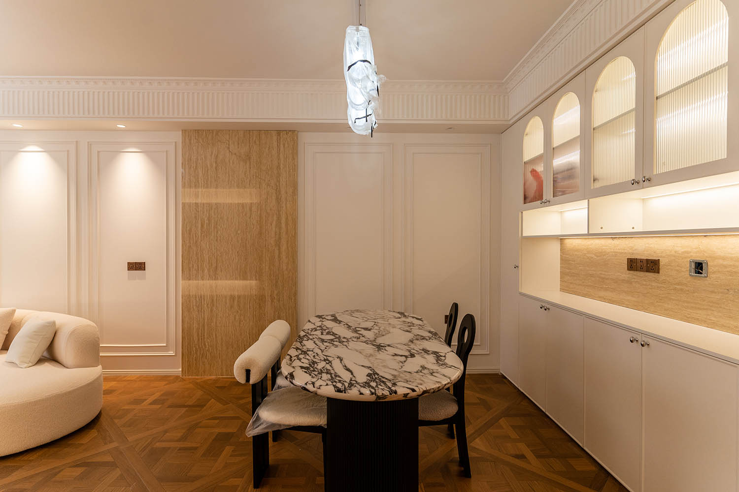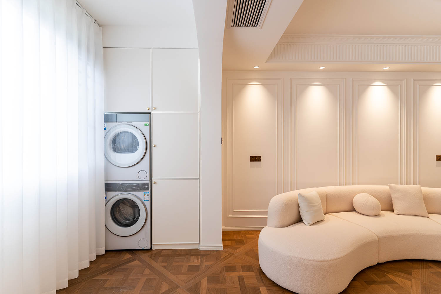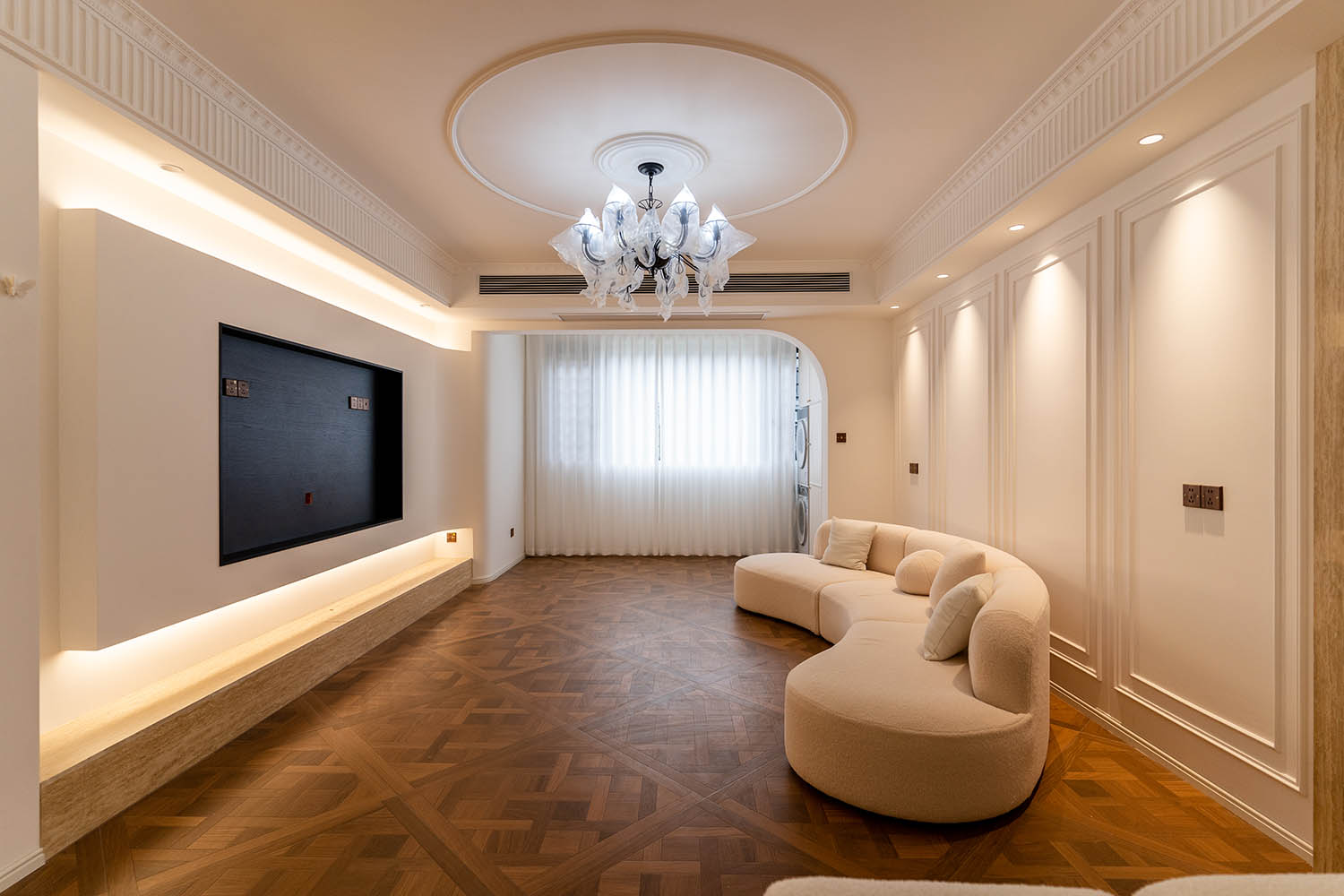 法式風(fēng)格以其優(yōu)雅的線條、精致的細(xì)節(jié)和浪漫的氛圍,成為高端家居設(shè)計(jì)的經(jīng)典選擇。它巧妙地將古典美學(xué)與現(xiàn)代生活需求相結(jié)合,創(chuàng)造出既有藝術(shù)感又實(shí)用舒適的居住環(huán)境。 對(duì)于133平米的戶型,法式風(fēng)格能充分發(fā)揮空間優(yōu)勢(shì),通過(guò)對(duì)稱布局、精致雕花和優(yōu)雅配色,打造出充滿貴族氣質(zhì)與藝術(shù)氛圍的理想居所。 設(shè)計(jì)理念與空間基調(diào) 玫瑰御園133平米法式風(fēng)格的核心在于營(yíng)造 “優(yōu)雅、浪漫、精致” 的生活氛圍。整體空間以淺色調(diào)為基底,采用米白、香草色、淺灰等優(yōu)雅色調(diào)作為主調(diào),為空間奠定明亮高雅的基調(diào)。