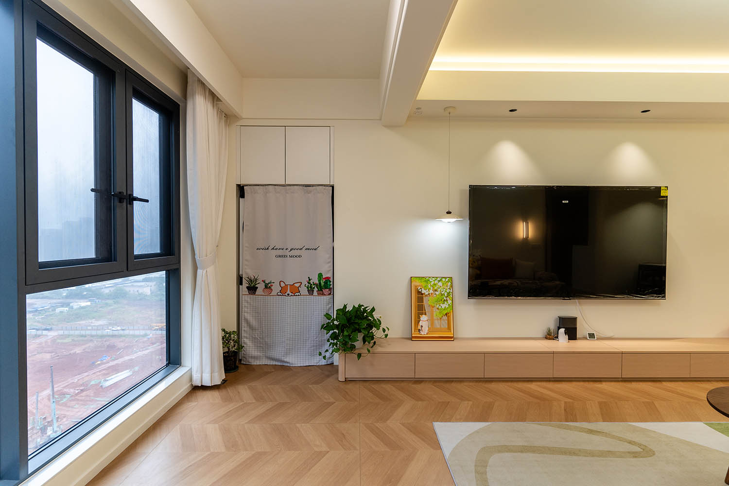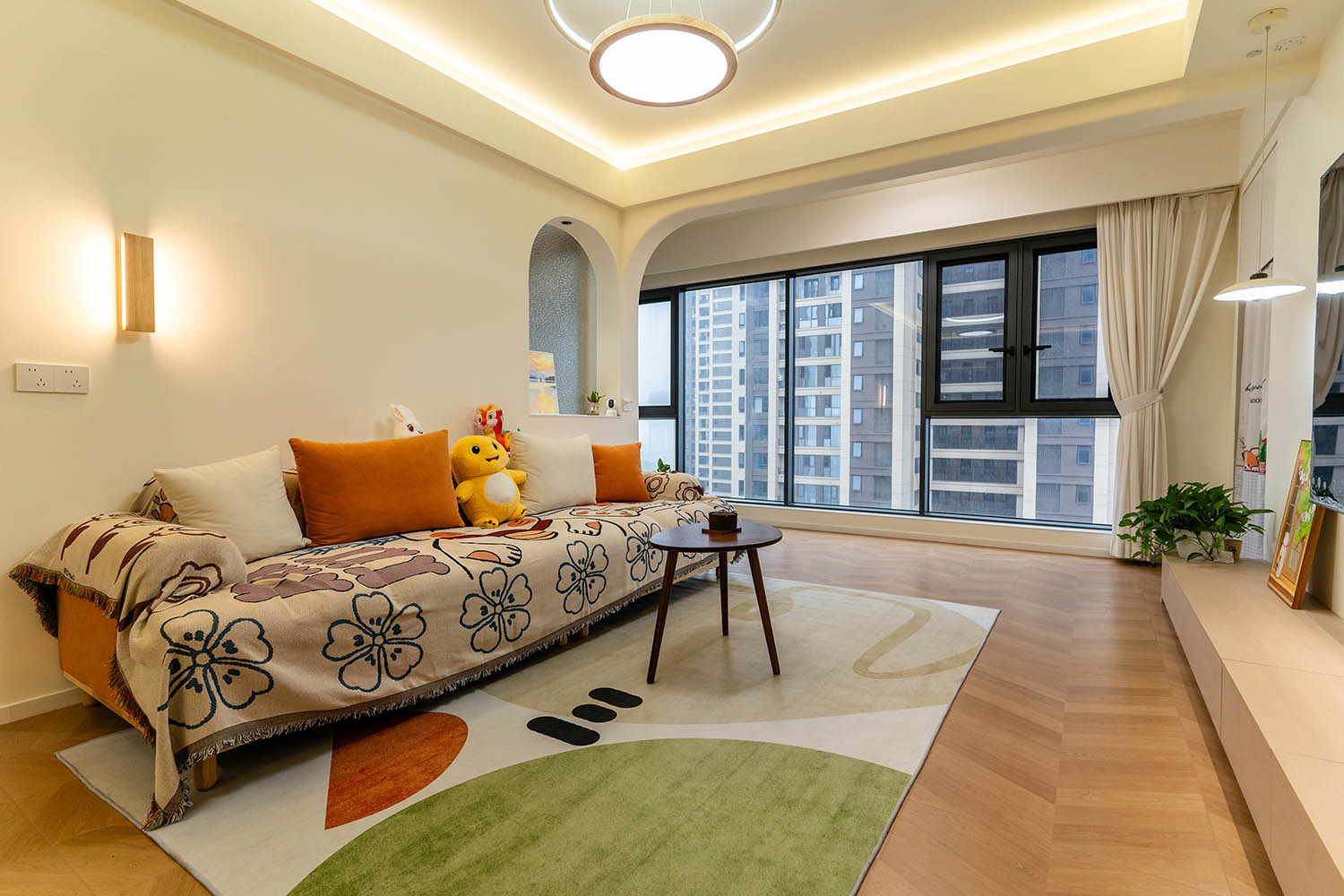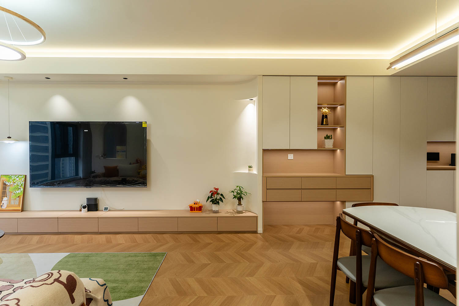 設計理念與空間基調(diào) 原木奶油風以低飽和度色彩、自然材質(zhì)與柔和線條為核心,在建發(fā)央著100㎡的戶型中,設計師通過奶油色基底與原木元素的融合,營造出溫暖治愈的居家氛圍。整體風格遵循“簡而不空”的原則,硬裝以簡約的幾何造型與流暢的動線為主,軟裝則強調(diào)材質(zhì)的天然感與舒適性,在實用性與美學之間找到完美平衡。 建發(fā)央著100㎡的原木奶油風,通過色彩、材質(zhì)與光影的巧妙平衡,將自然治愈感融入日常。既以開放式布局與智能收納滿足了現(xiàn)代生活的高效需求,又以弧形曲線與柔軟織物撫慰居者身心,真正詮釋了 “簡約中見細節(jié),溫柔中藏高級” 的居住理想。