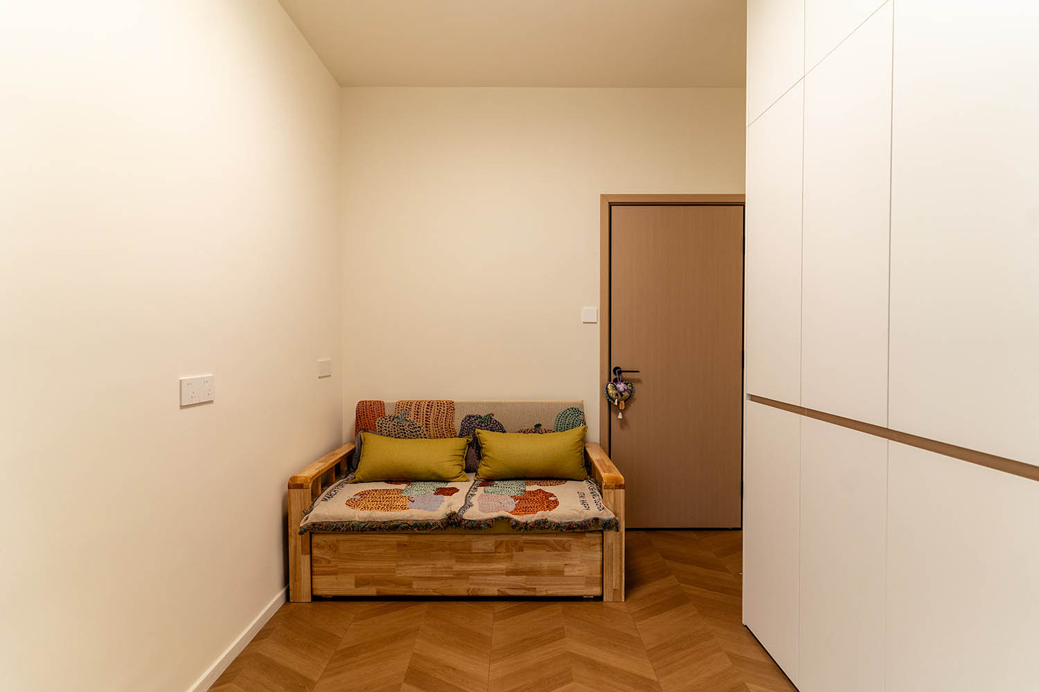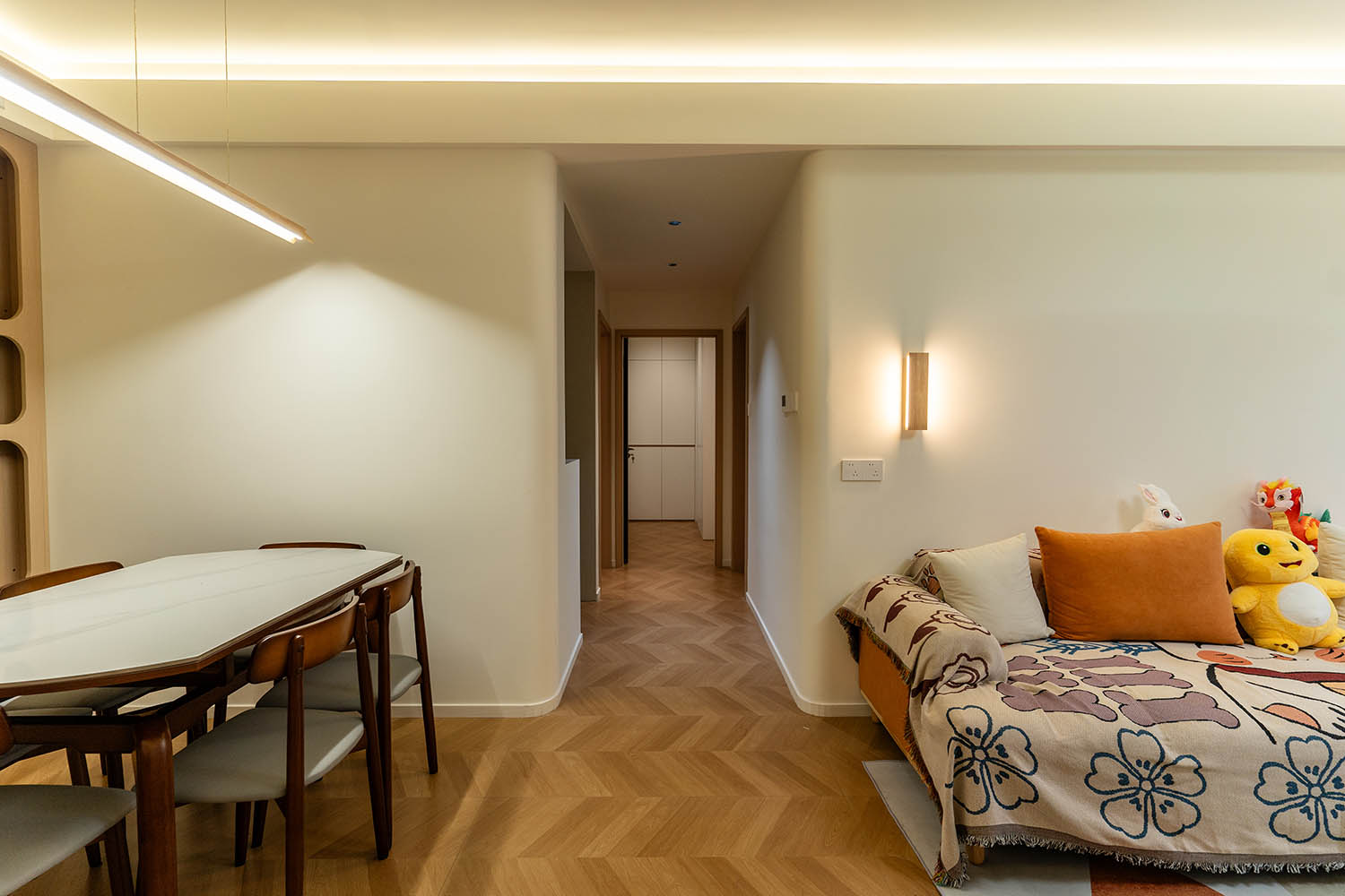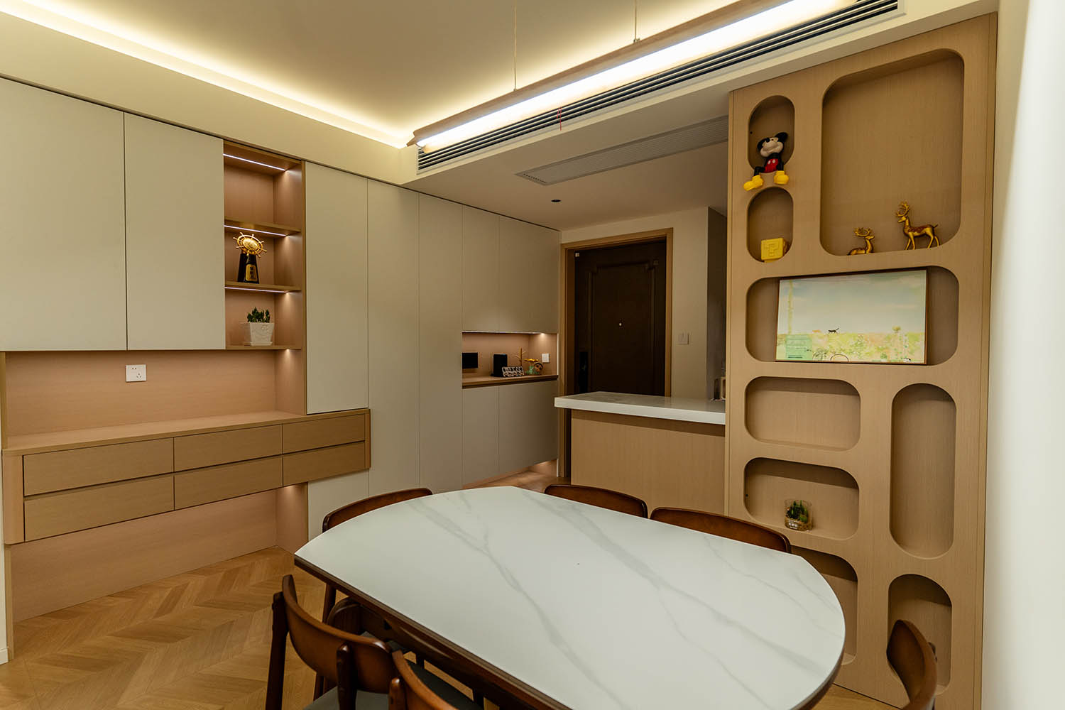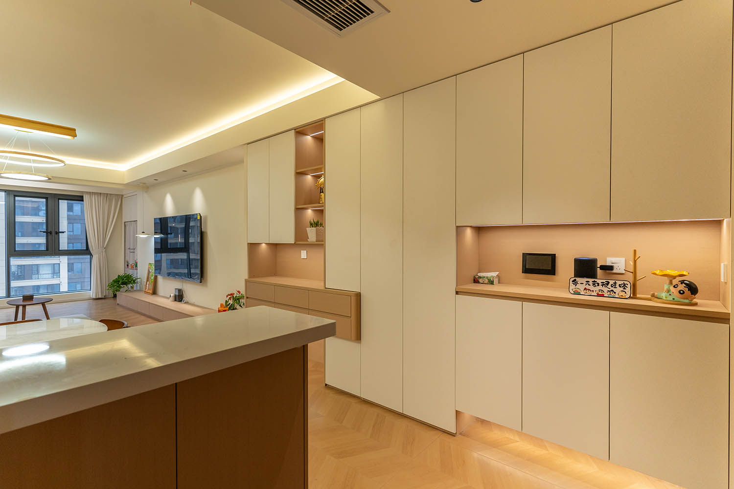 設計理念與空間基調(diào) 原木奶油風以低飽和度色彩、自然材質(zhì)與柔和線條為核心,在建發(fā)央著100㎡的戶型中,設計師通過奶油色基底與原木元素的融合,營造出溫暖治愈的居家氛圍。整體風格遵循“簡而不空”的原則,硬裝以簡約的幾何造型與流暢的動線為主,軟裝則強調(diào)材質(zhì)的天然感與舒適性,在實用性與美學之間找到完美平衡。 建發(fā)央著100㎡的原木奶油風,通過色彩、材質(zhì)與光影的巧妙平衡,將自然治愈感融入日常。既以開放式布局與智能收納滿足了現(xiàn)代生活的高效需求,又以弧形曲線與柔軟織物撫慰居者身心,真正詮釋了 “簡約中見細節(jié),溫柔中藏高級” 的居住理想。
