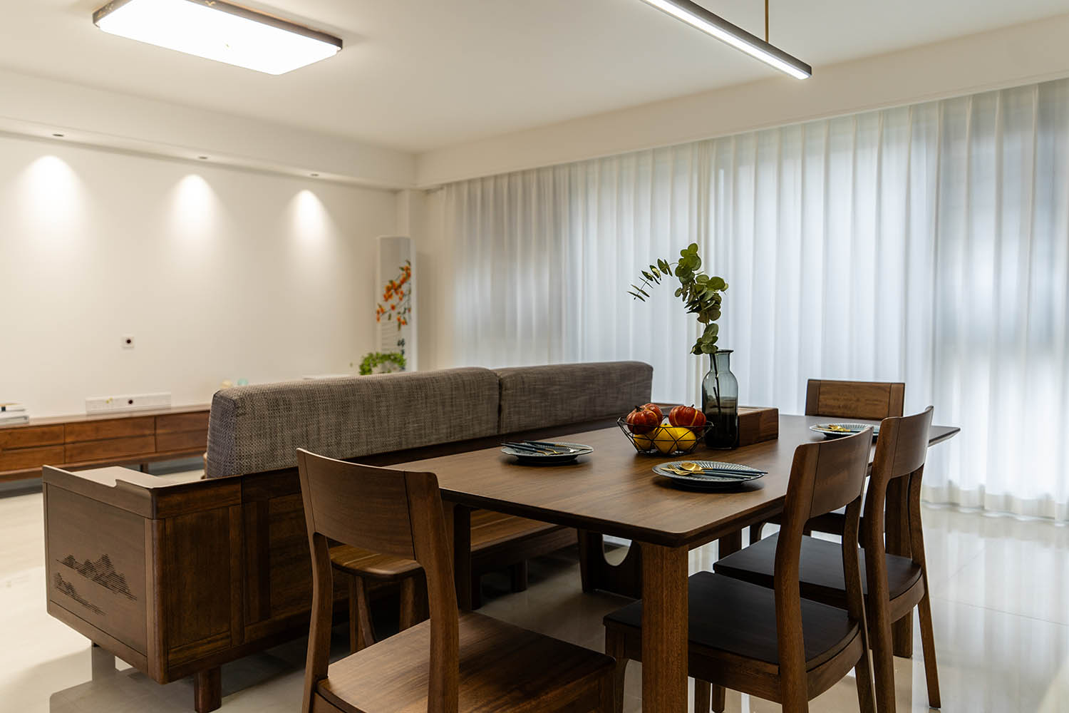 東方之神,舍傳統(tǒng)之形,讓古典美學(xué)在現(xiàn)代空間中煥發(fā)新生 新中式風(fēng)格以其典雅的氣質(zhì)、深厚的文化底蘊(yùn)和現(xiàn)代的舒適性,成為高端家居設(shè)計(jì)的首選。它巧妙地將中國(guó)傳統(tǒng)元素與現(xiàn)代生活需求相融合,創(chuàng)造出既有東方韻味又符合當(dāng)代審美的居住環(huán)境。 對(duì)于142平米的戶型,新中式風(fēng)格能充分發(fā)揮空間優(yōu)勢(shì),通過對(duì)稱布局、留白藝術(shù)和精致細(xì)節(jié),打造出充滿文化底蘊(yùn)與現(xiàn)代舒適的理想居所。 新中式風(fēng)格在建發(fā)央著142平的空間中,成功實(shí)現(xiàn)了傳統(tǒng)文化與現(xiàn)代生活的對(duì)話。它不僅僅是對(duì)古典元素的簡(jiǎn)單復(fù)制,更是對(duì)東方美學(xué)的當(dāng)代詮釋,讓居住者在現(xiàn)代舒適中感受傳統(tǒng)文化的魅力。 設(shè)計(jì)精髓在于對(duì)文化符號(hào)的精準(zhǔn)提煉、對(duì)空間意境的營(yíng)造和對(duì)現(xiàn)代生活需求的滿足。只有經(jīng)過如此深思熟慮的設(shè)計(jì),才能打造出既有文化底蘊(yùn)又符合當(dāng)代生活需求的理想居所。