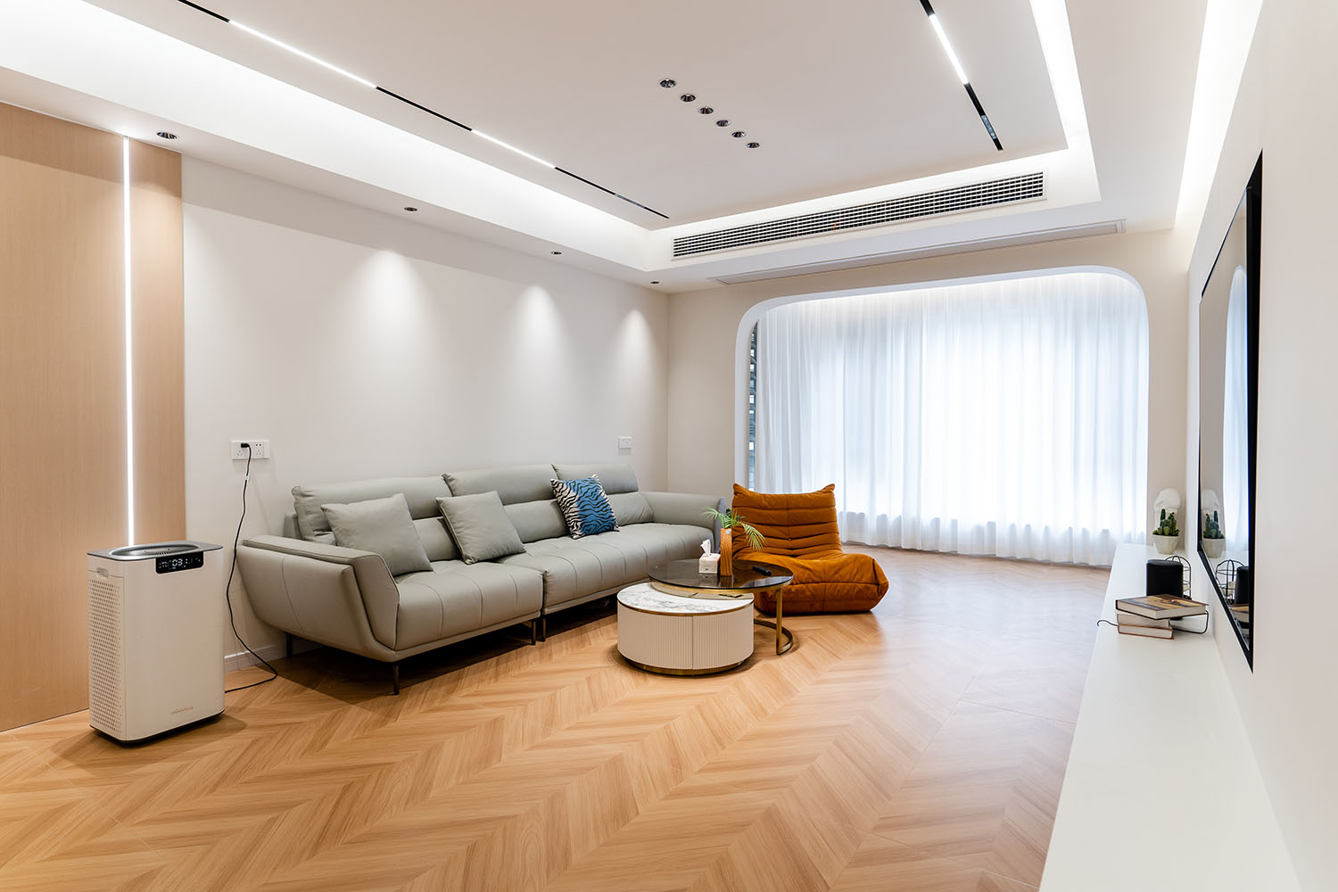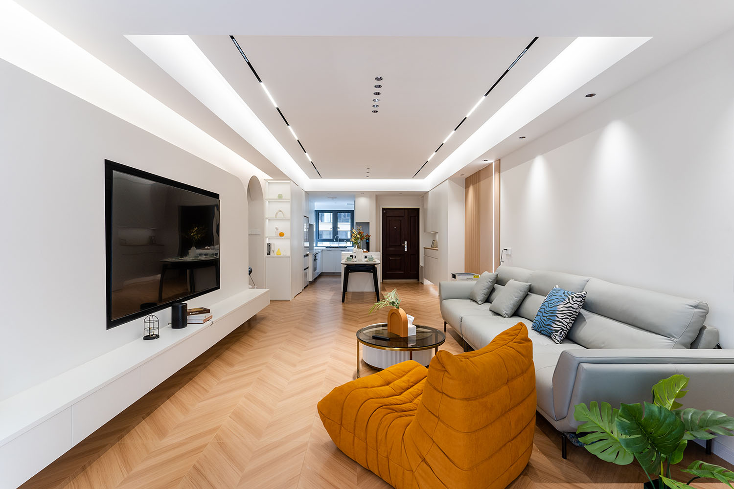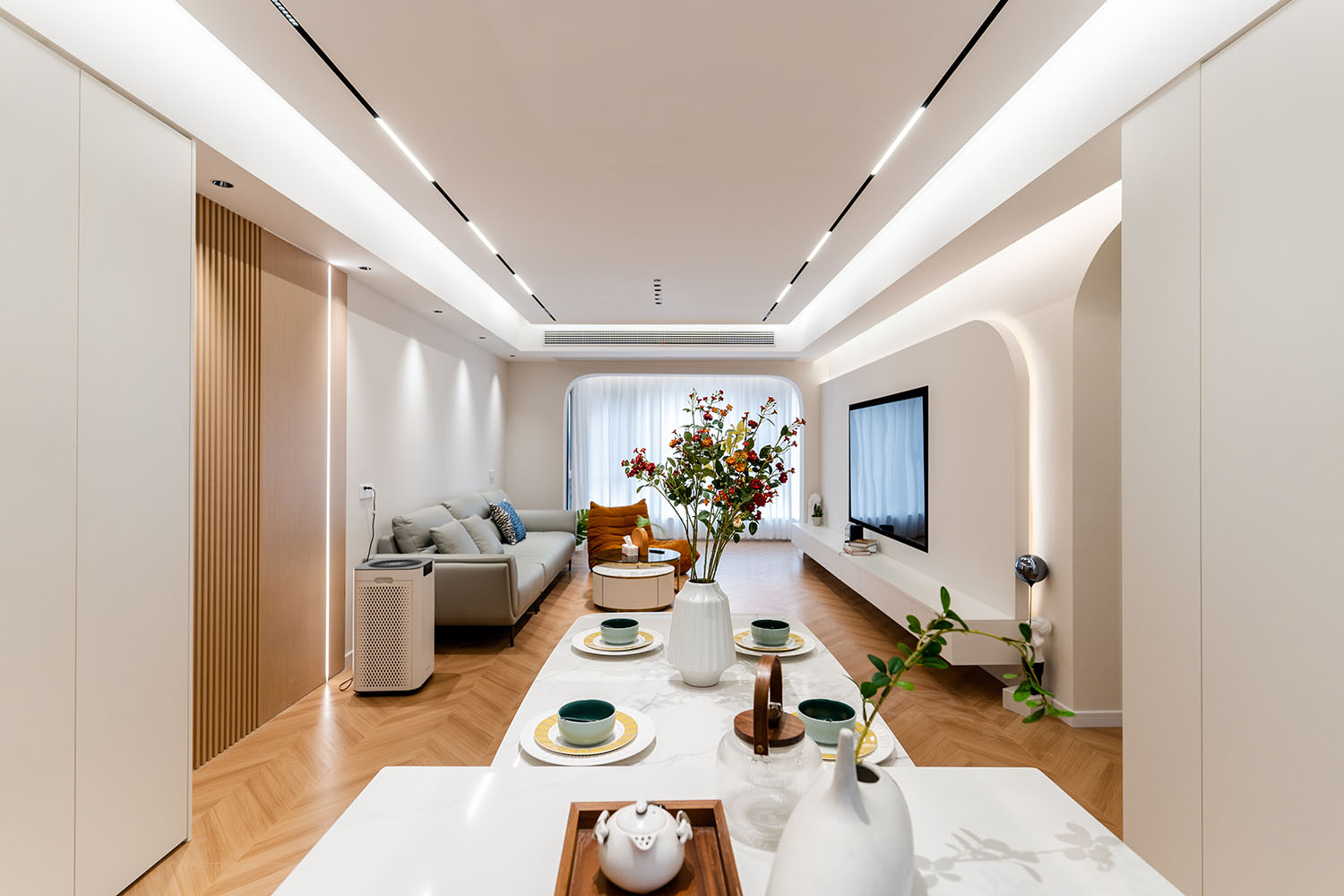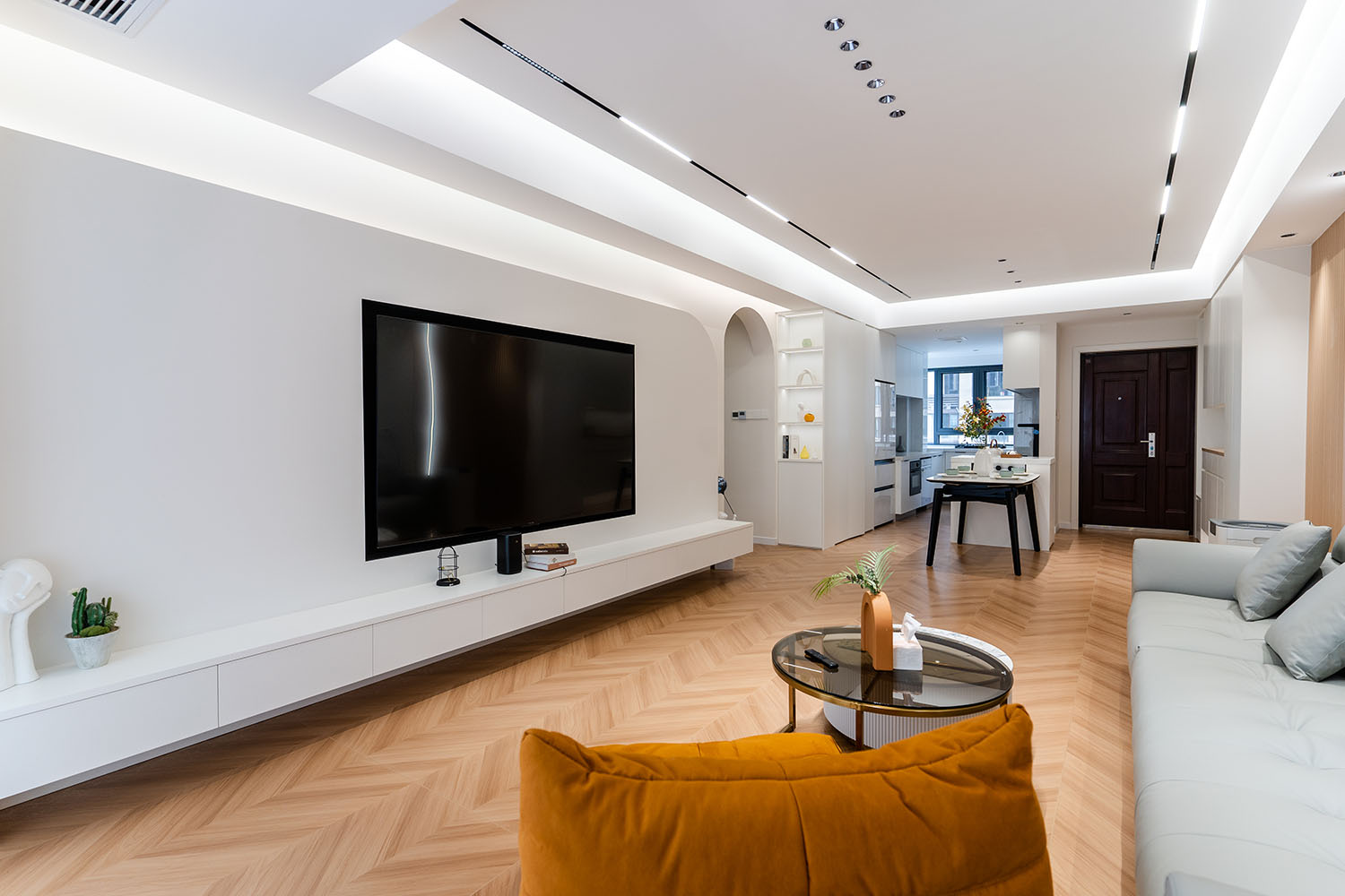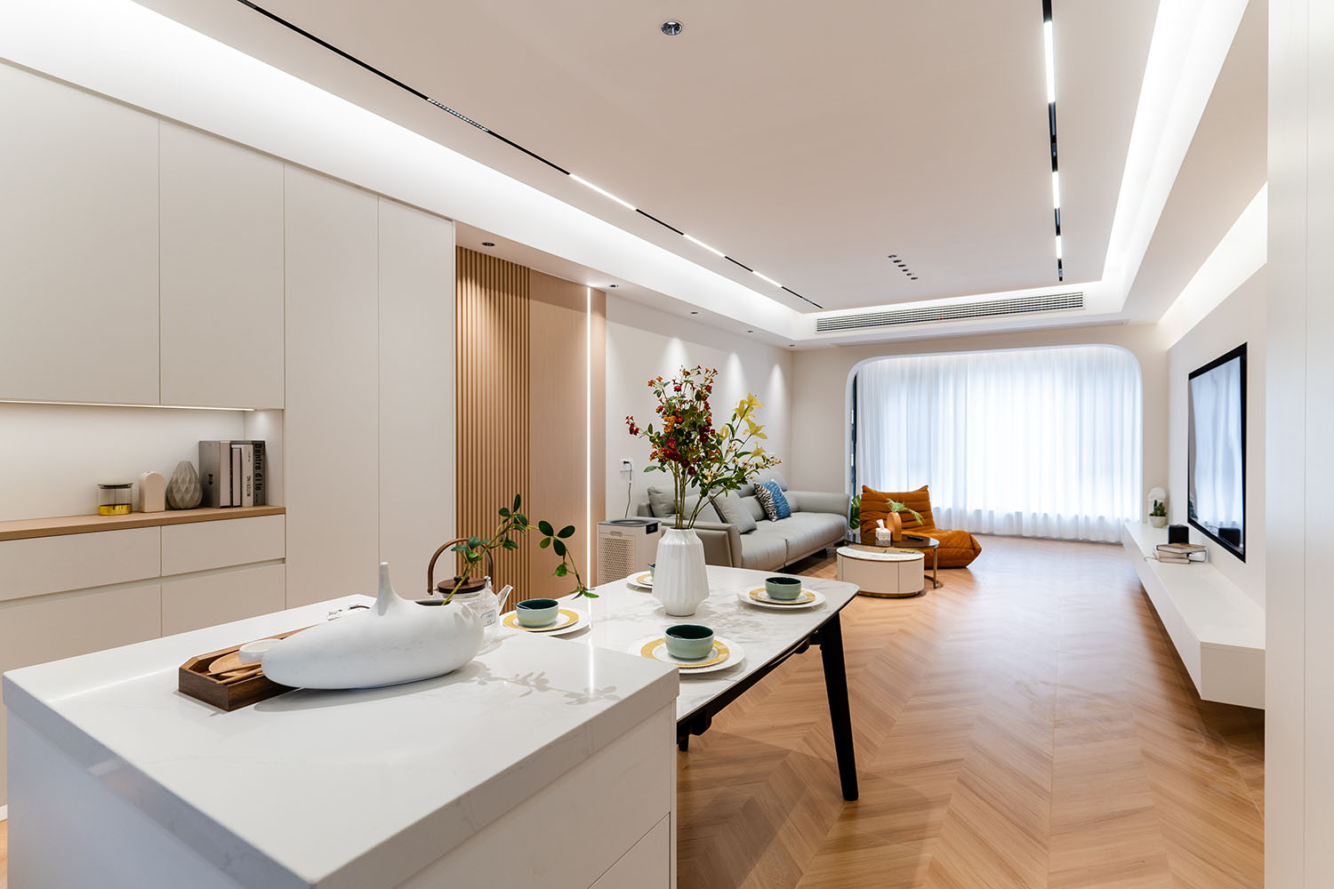當(dāng)溫柔的奶油色系包裹整個(gè)空間,家便如同被注入一捧陽(yáng)光,散發(fā)出綿密、柔軟而治愈的力量。 本案位于株洲未名1898小區(qū),為一套126平米的住宅。設(shè)計(jì)師以風(fēng)靡一時(shí)的現(xiàn)代奶油風(fēng)為基調(diào),巧妙融合柔和的曲線、溫潤(rùn)的材質(zhì)與靈動(dòng)的光影,于現(xiàn)代理性的空間骨架中,注入恰到好處的溫柔與松弛感,最終打造出一個(gè)仿佛會(huì)呼吸的、能撫慰心靈的理想之家。 在這126平米的空間里,現(xiàn)代奶油風(fēng)展現(xiàn)的遠(yuǎn)不止于視覺(jué)上的柔和。它通過(guò)連貫的設(shè)計(jì)語(yǔ)言、對(duì)細(xì)節(jié)的溫柔處理以及對(duì)光影的極致運(yùn)用,成功地塑造了一個(gè)既能安放身體,又能療愈心靈的居住場(chǎng)所。它不張揚(yáng),卻擁有溫暖人心的強(qiáng)大力量,完美詮釋了何為“家的溫柔哲學(xué)”。