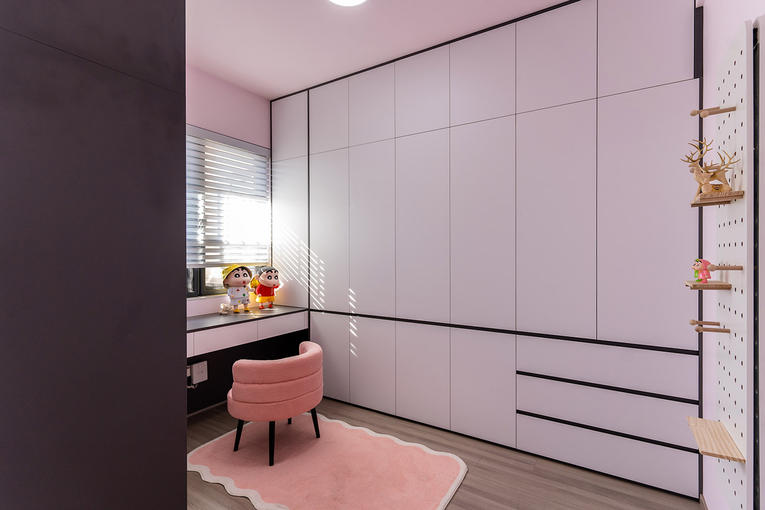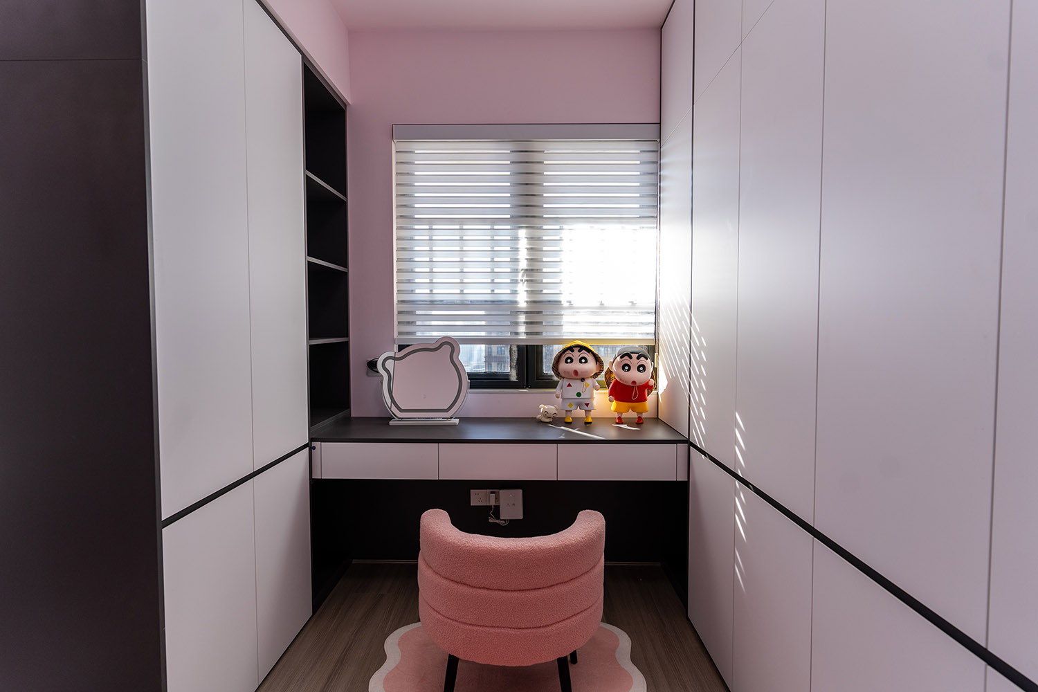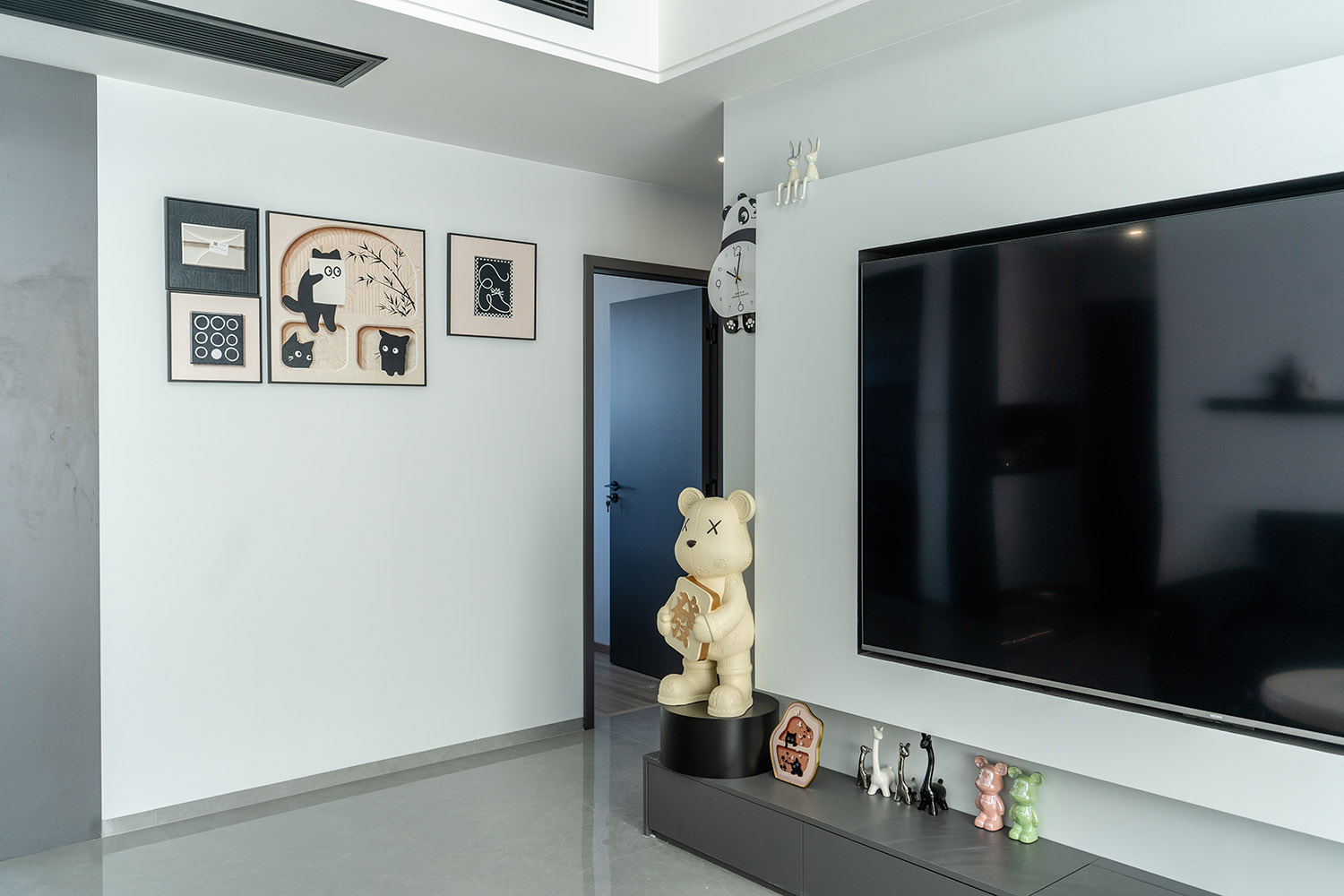 本案以“像素重組” 為核心理念,將136㎡的空間視作一個(gè)可以拆解與重構(gòu)的光影實(shí)驗(yàn)室。設(shè)計(jì)放棄所有裝飾性色彩,通過(guò)黑、白、灰三種基色的極致比例控制、不同材質(zhì)在單一色系下的質(zhì)感博弈以及精密計(jì)算的光影路徑,構(gòu)筑一個(gè)理性冷靜又充滿(mǎn)感知張力的未來(lái)居所。這里不是色彩的缺失,而是將色彩解構(gòu)為更本質(zhì)的光、影與肌理,讓居住回歸材料與空間的本質(zhì)對(duì)話(huà)。 通過(guò)極致的黑白灰控制與材料實(shí)驗(yàn),探索了現(xiàn)代居住的一種可能性:當(dāng)色彩被剝離,空間的形式、光影與質(zhì)感便被無(wú)限放大,人對(duì)空間的感知也因此變得更為敏銳和直接。它并非一個(gè)“冷淡”的空間,而是一個(gè)高度凝練、充滿(mǎn)理性之美并能包容居住者所有情緒與生活的“寧?kù)o背景板”。在這里,一幅畫(huà)、一株綠植、一本書(shū),乃至居住者本身,都將成為空間中最生動(dòng)、最富色彩的焦點(diǎn)。