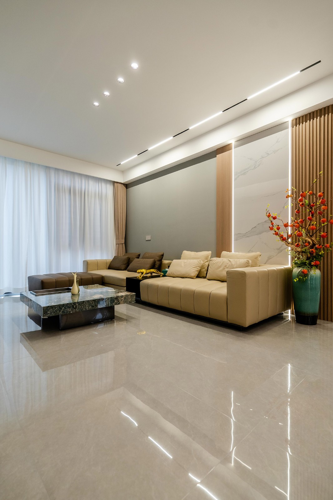現(xiàn)代輕奢風(fēng)格,是在簡(jiǎn)潔的現(xiàn)代框架上,通過(guò)精致的細(xì)節(jié)與克制的華麗,構(gòu)筑出理性與感性并存的居住美學(xué)。在139平米的空間里,它能將功能主義的實(shí)用與輕奢主義的優(yōu)雅完美結(jié)合,打造一個(gè)兼具都市效率、家庭溫度與圈層品位的精致居所。 本案的核心設(shè)計(jì)理念是 “奢于細(xì)節(jié),雅于克制” 。它建立在現(xiàn)代主義堅(jiān)實(shí)的功能與結(jié)構(gòu)基礎(chǔ)之上,通過(guò)材質(zhì)、色彩與光影的精細(xì)化點(diǎn)綴,賦予空間內(nèi)在的溫度與外在的辨識(shí)度。設(shè)計(jì)旨在營(yíng)造一種“低調(diào)的矚目感”,讓奢華不流于表面,而是內(nèi)化于每一處精良的用料、精準(zhǔn)的比例與舒適的體驗(yàn)之中。
