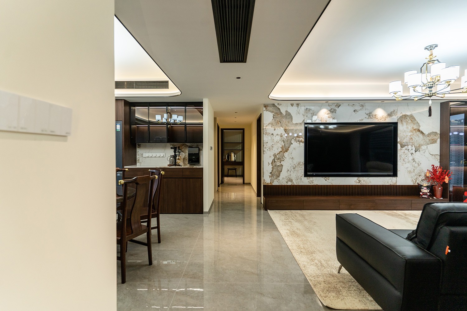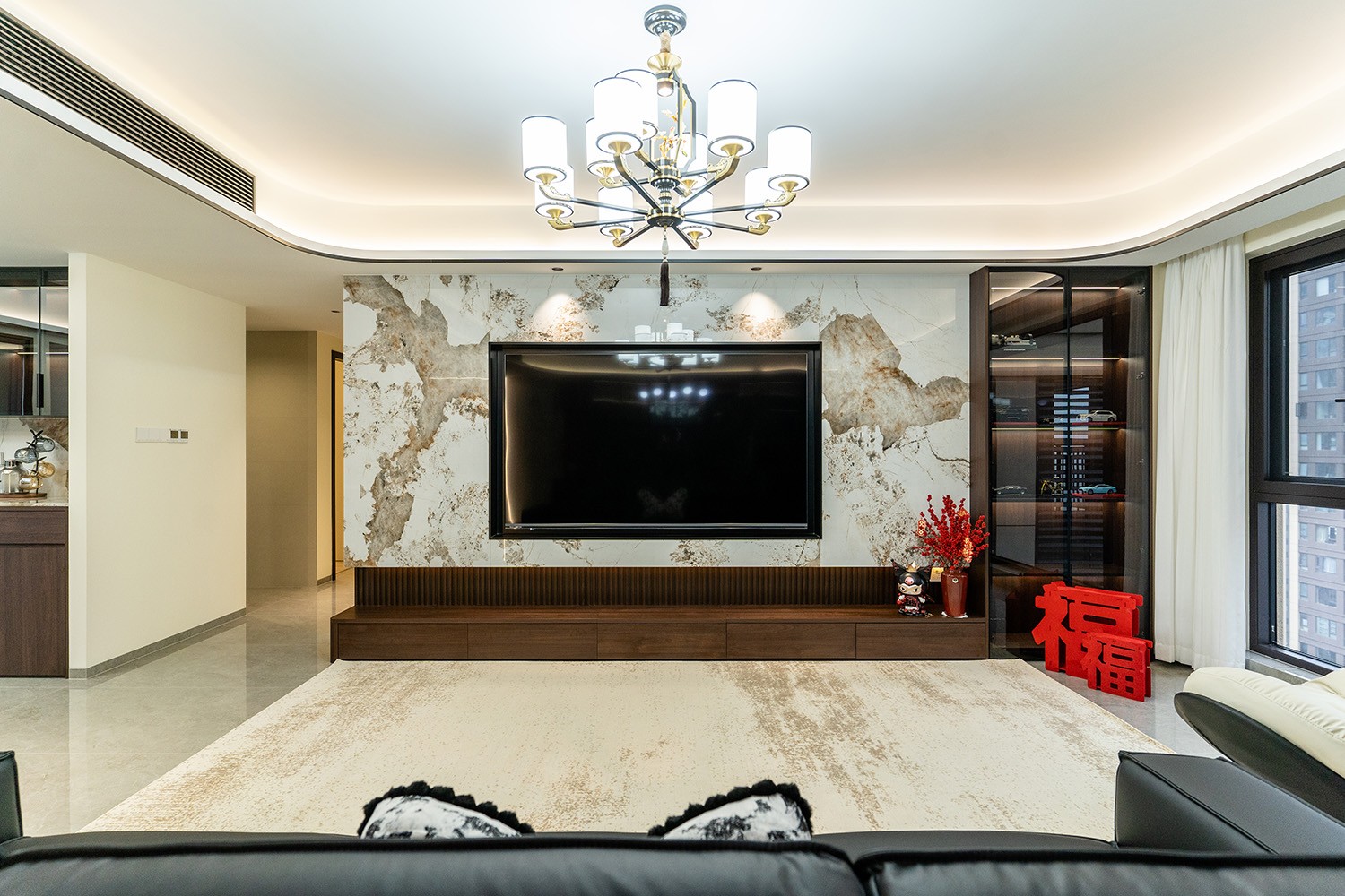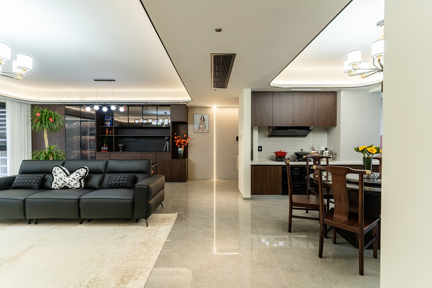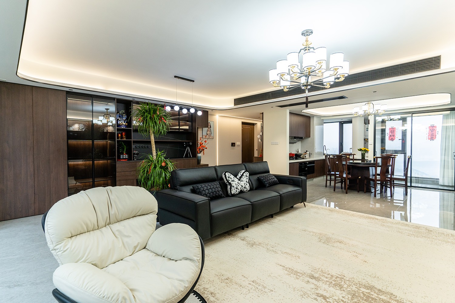 新中式風(fēng)格是東方哲學(xué)與現(xiàn)代生活的詩意融合。它不拘泥于符號的堆砌,而是通過對空間意境的營造、材質(zhì)肌理的對話與文化神韻的提煉,構(gòu)筑一個沉穩(wěn)大氣、清雅含蓄的居住空間。本案以建發(fā)央著142平米的改善型戶型為載體,深度解析如何將傳統(tǒng)文脈的精髓,轉(zhuǎn)化為一個可供當(dāng)代家族棲居、傳承與品鑒的雅致家園。 本案的核心設(shè)計理念是 “古韻今形,心居合一” 。旨在讓傳統(tǒng)的東方美學(xué),以一種更符合現(xiàn)代人生活習(xí)慣與審美的方式“活化”于空間之中。設(shè)計摒棄繁復(fù)雕飾,轉(zhuǎn)而通過留白的智慧、框景的手法、天然材質(zhì)的并置,于無形中勾勒出東方意蘊(yùn)。最終營造的,是一個能讓身心沉靜、讓家族情感凝聚的“文化容器”與“精神家園”。
