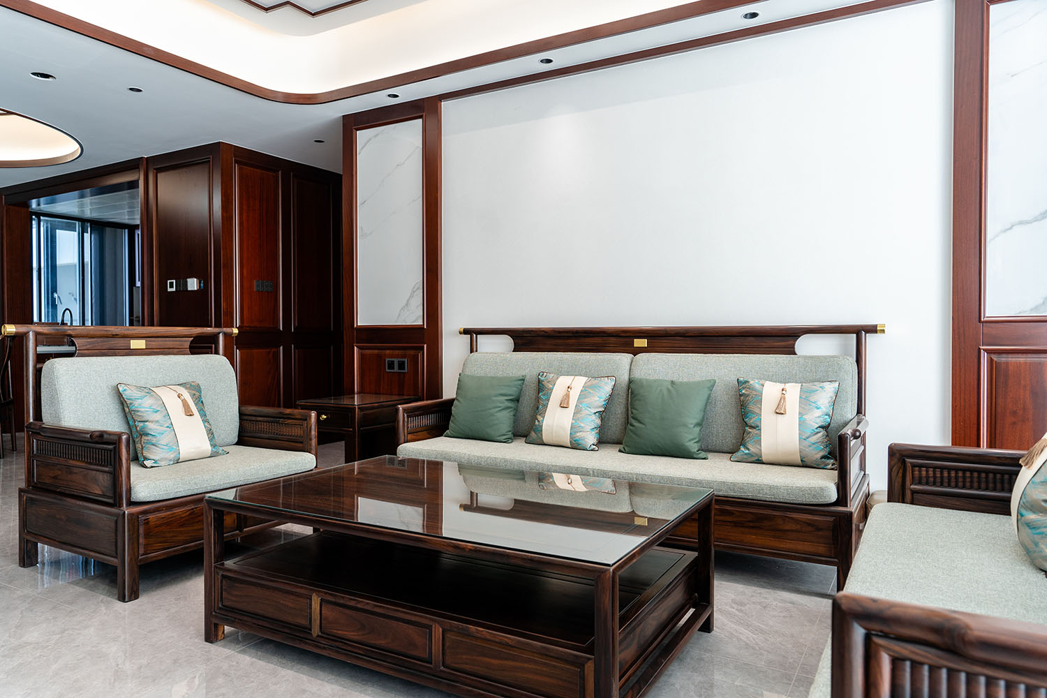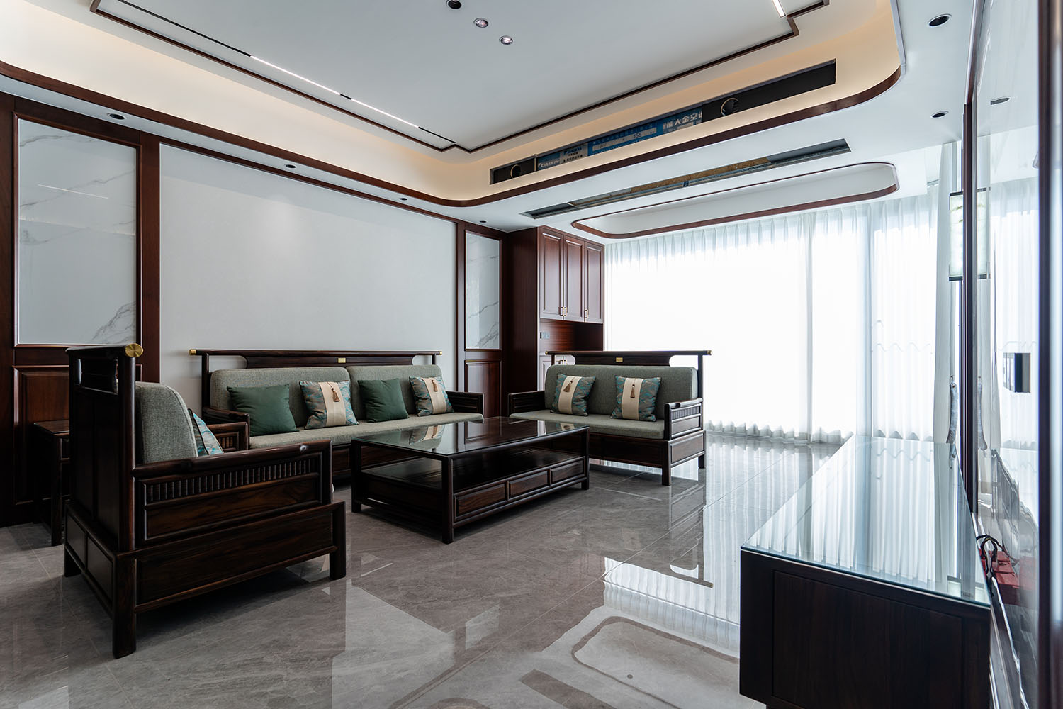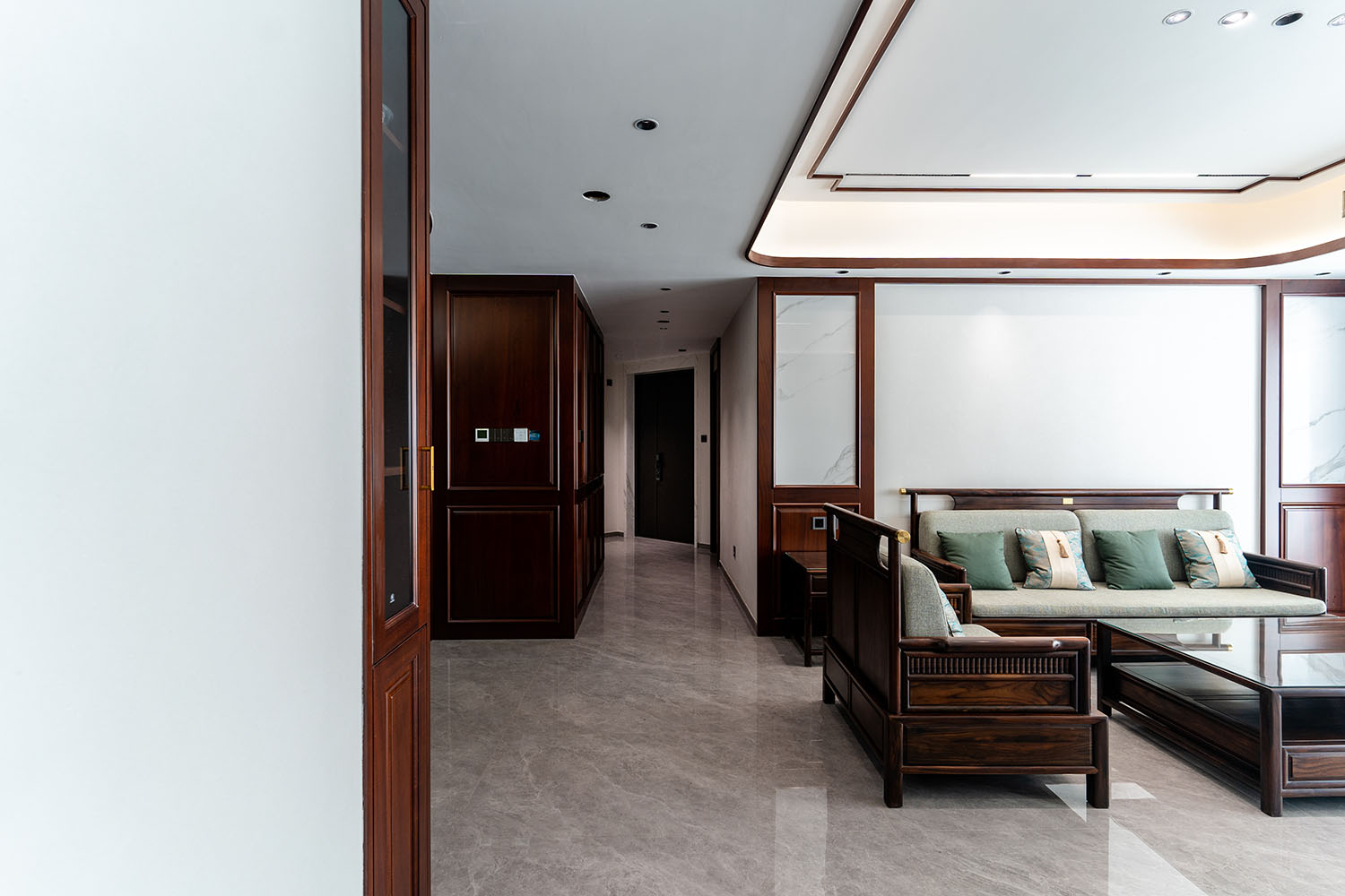 本案的核心設(shè)計(jì)理念是 “大象無形,大音希聲” 。旨在以恢弘的空間尺度,承載最含蓄內(nèi)斂的東方意境。設(shè)計(jì)追求的不僅是形式的呈現(xiàn),更是空間氣場、文脈氣韻與生活氣息的完美融合。通過中軸對稱、虛實(shí)相生、框景借景等傳統(tǒng)造園手法,在現(xiàn)代大宅的框架內(nèi),營造出一種可供三代同堂觀想、品鑒與傳承的居住體驗(yàn)。 新中式風(fēng)格,是東方美學(xué)智慧與現(xiàn)代居住哲學(xué)的集大成者。在180平米的寬闊天地里,它得以超越符號的堆砌,轉(zhuǎn)而通過宏大的空間敘事、深層的材質(zhì)對話與詩意的意境營造,打造一座兼具文化傳承、家族風(fēng)范與當(dāng)代奢華的傳世府邸。