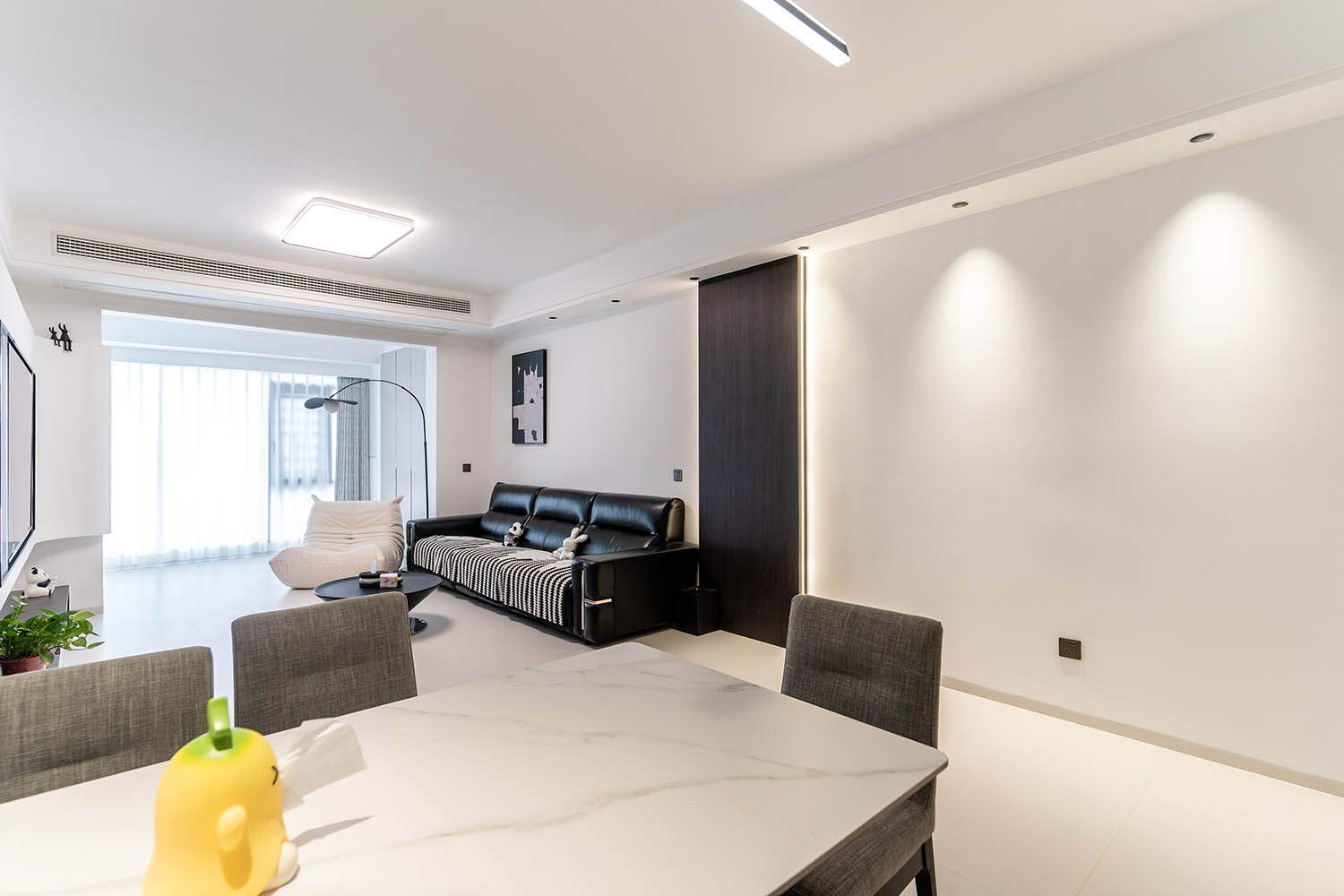 設計理念 本案以“現代極簡”為核心理念,強調“少即是多”的設計哲學,通過干凈的線條、克制的色彩與高效的空間規(guī)劃,打造一個兼具功能性與美學價值的居住環(huán)境。設計注重光影互動、材質對比與人性化細節(jié),滿足都市精英對簡約、舒適與品質生活的追求。 本案通過極簡的視覺語言與高效的空間利用,實現“形式追隨功能”的設計本質,為居住者提供一個寧靜、有序且充滿現代美學的理想居所。