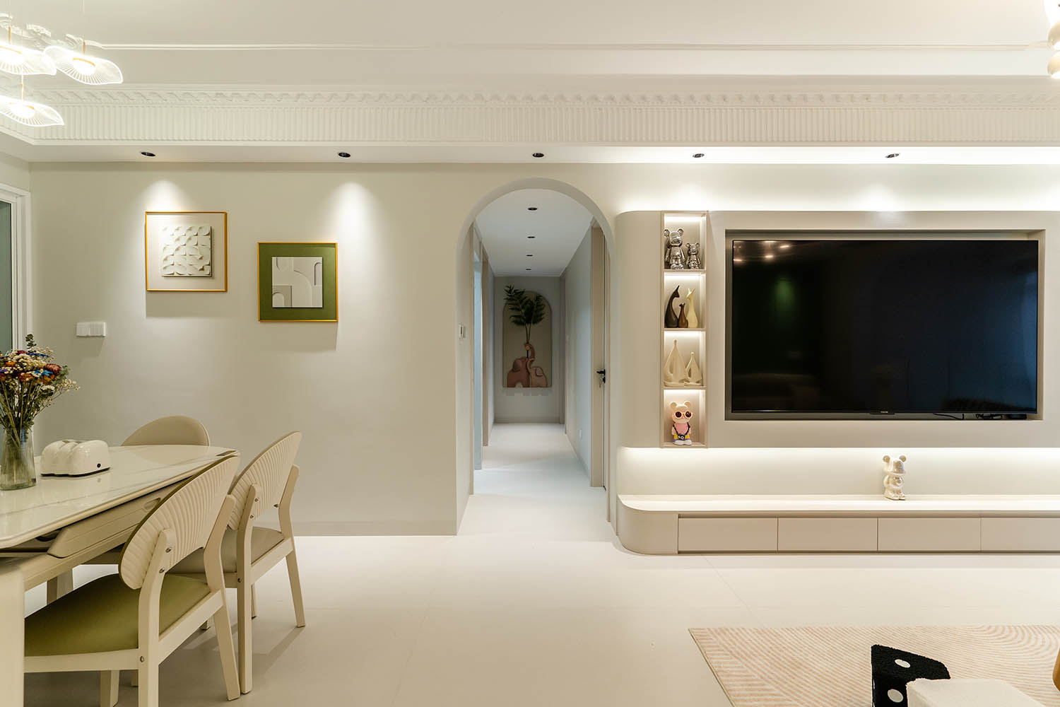 在快節(jié)奏的現(xiàn)代生活中,一個能讓人卸下疲憊、回歸本真的居住空間顯得尤為珍貴。株洲金地天元匯這套125㎡的現(xiàn)代奶油風(fēng)格裝修案例,以其柔和的色調(diào)、流暢的線條和人性化的設(shè)計,打造出一個既溫馨又高級的治愈系居所。本案巧妙融合了奶油風(fēng)的溫柔基調(diào)與現(xiàn)代風(fēng)格的簡約利落,通過開放式布局、無主燈設(shè)計和弧形元素的應(yīng)用,營造出令人心曠神怡的家居氛圍。讓我們一起走進(jìn)這個如云朵般柔軟的空間,感受設(shè)計師如何將"溫柔"與"現(xiàn)代"完美結(jié)合,創(chuàng)造出一個既有顏值又實用的理想家。