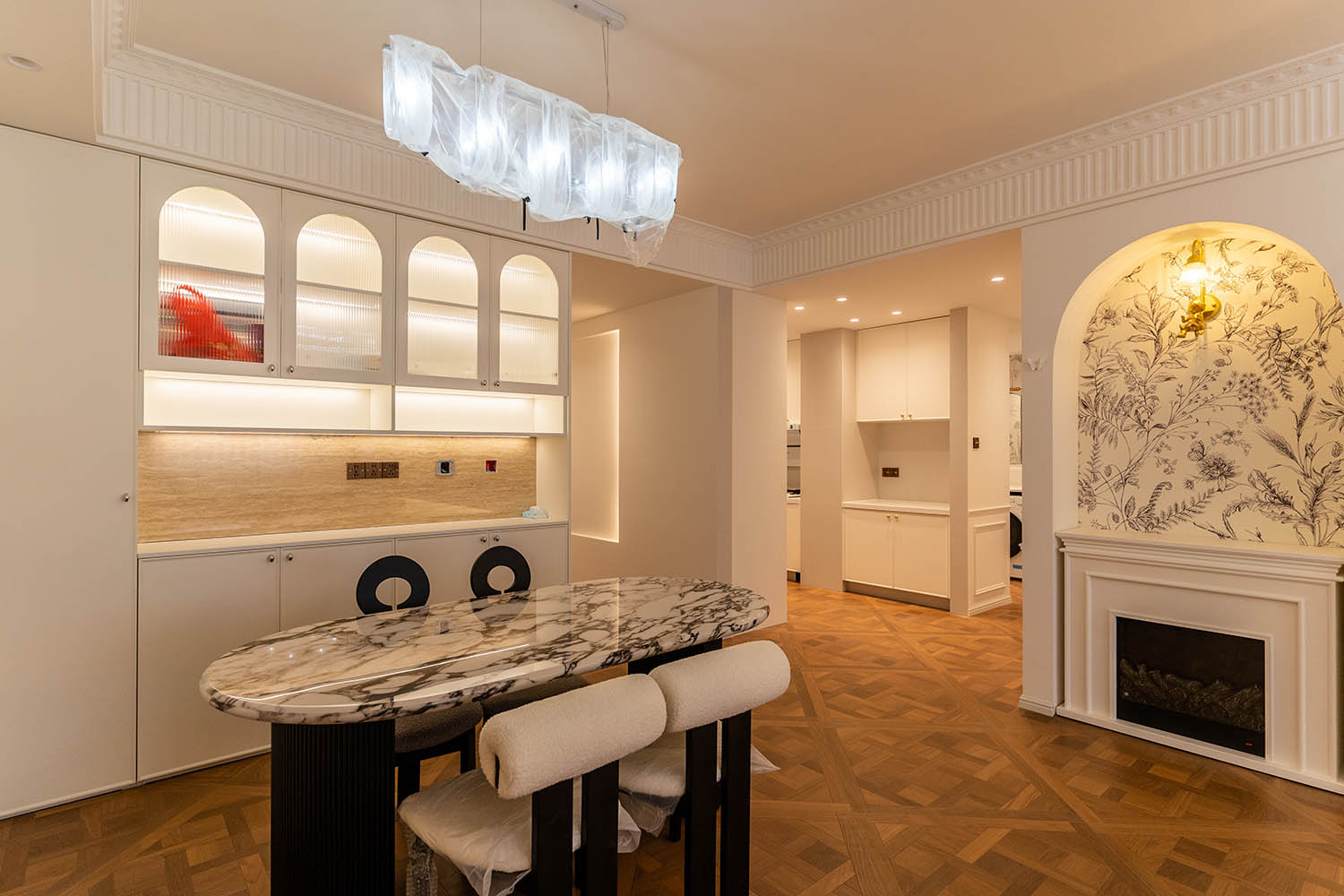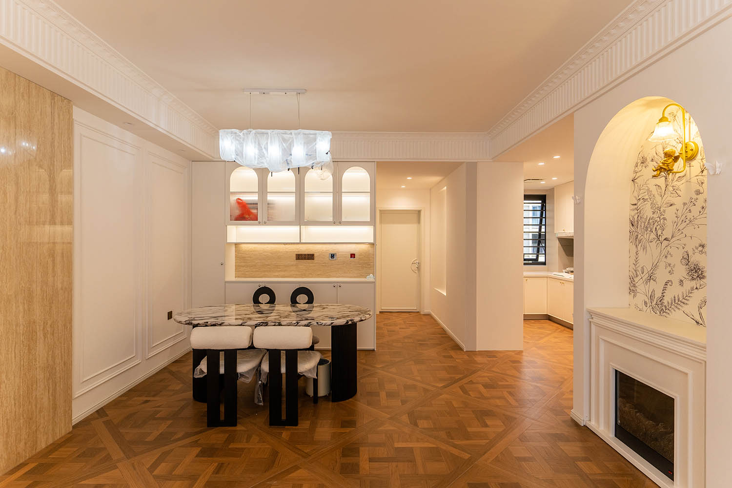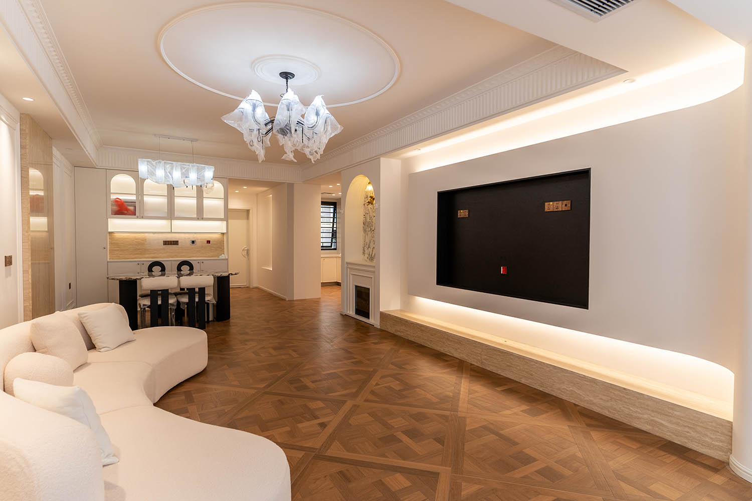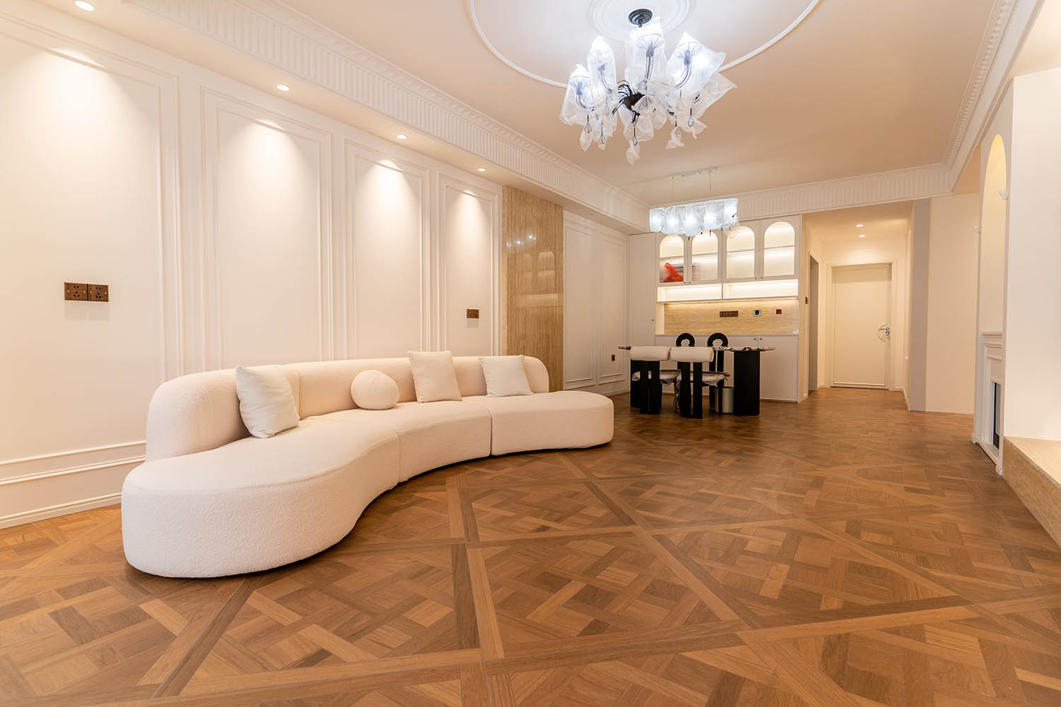 法式風(fēng)格以其優(yōu)雅的線條、精致的細(xì)節(jié)和浪漫的氛圍,成為高端家居設(shè)計(jì)的經(jīng)典選擇。它巧妙地將古典美學(xué)與現(xiàn)代生活需求相結(jié)合,創(chuàng)造出既有藝術(shù)感又實(shí)用舒適的居住環(huán)境。 對(duì)于133平米的戶型,法式風(fēng)格能充分發(fā)揮空間優(yōu)勢(shì),通過(guò)對(duì)稱布局、精致雕花和優(yōu)雅配色,打造出充滿貴族氣質(zhì)與藝術(shù)氛圍的理想居所。 設(shè)計(jì)理念與空間基調(diào) 玫瑰御園133平米法式風(fēng)格的核心在于營(yíng)造 “優(yōu)雅、浪漫、精致” 的生活氛圍。整體空間以淺色調(diào)為基底,采用米白、香草色、淺灰等優(yōu)雅色調(diào)作為主調(diào),為空間奠定明亮高雅的基調(diào)。