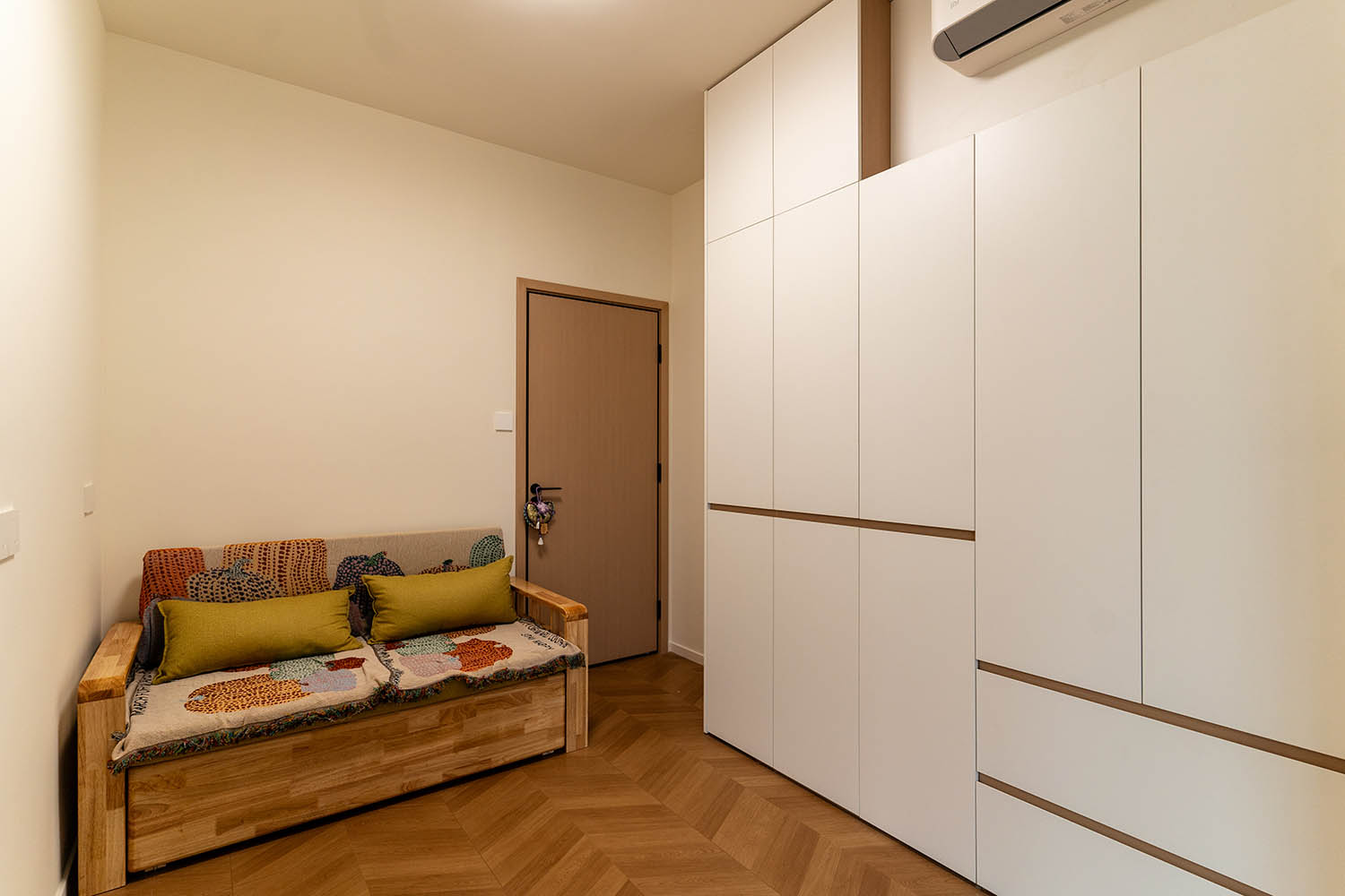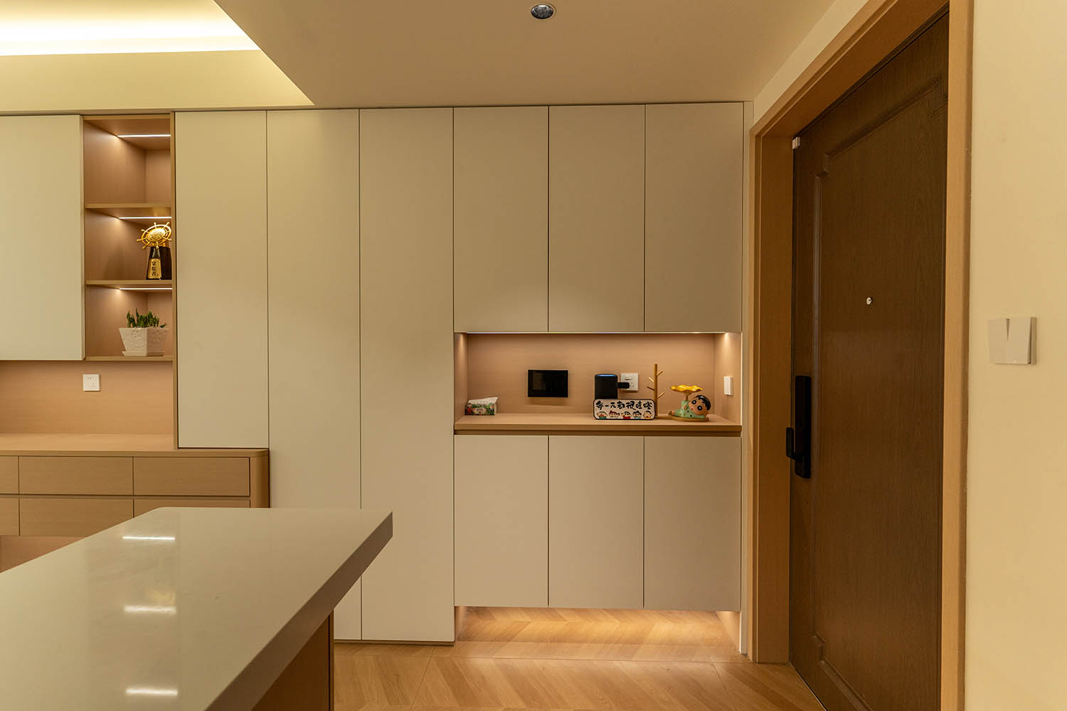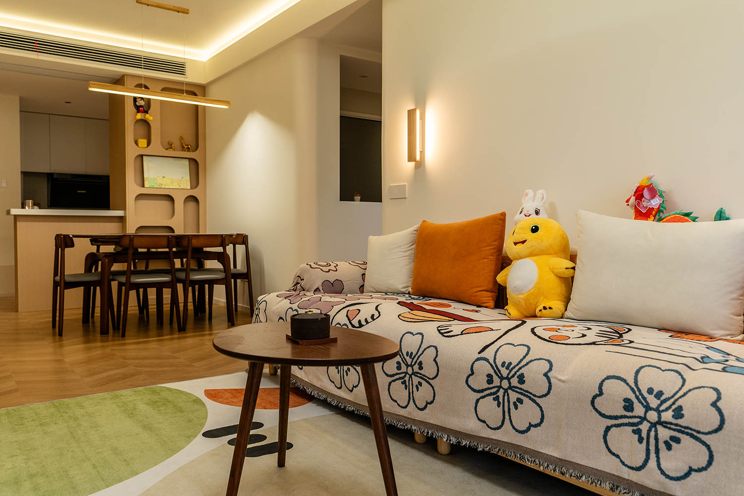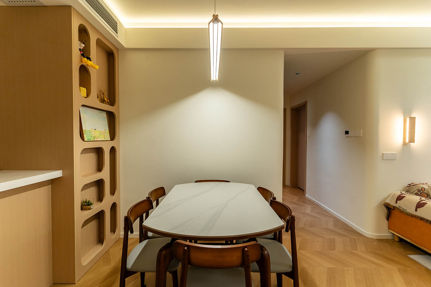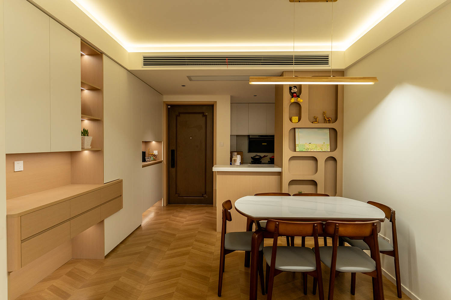 設計理念與空間基調(diào) 原木奶油風以低飽和度色彩、自然材質(zhì)與柔和線條為核心,在建發(fā)央著100㎡的戶型中,設計師通過奶油色基底與原木元素的融合,營造出溫暖治愈的居家氛圍。整體風格遵循“簡而不空”的原則,硬裝以簡約的幾何造型與流暢的動線為主,軟裝則強調(diào)材質(zhì)的天然感與舒適性,在實用性與美學之間找到完美平衡。 建發(fā)央著100㎡的原木奶油風,通過色彩、材質(zhì)與光影的巧妙平衡,將自然治愈感融入日常。既以開放式布局與智能收納滿足了現(xiàn)代生活的高效需求,又以弧形曲線與柔軟織物撫慰居者身心,真正詮釋了 “簡約中見細節(jié),溫柔中藏高級” 的居住理想。