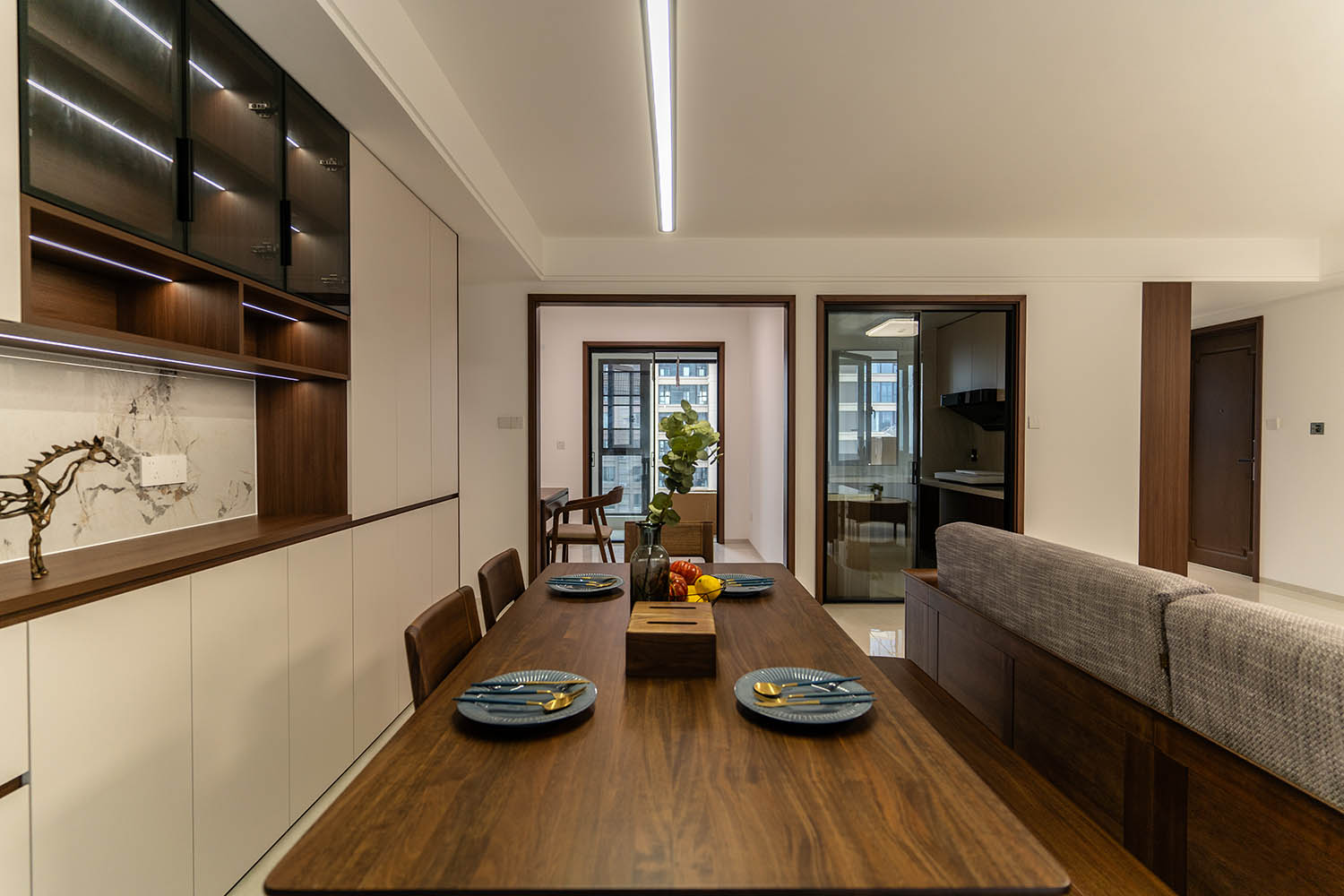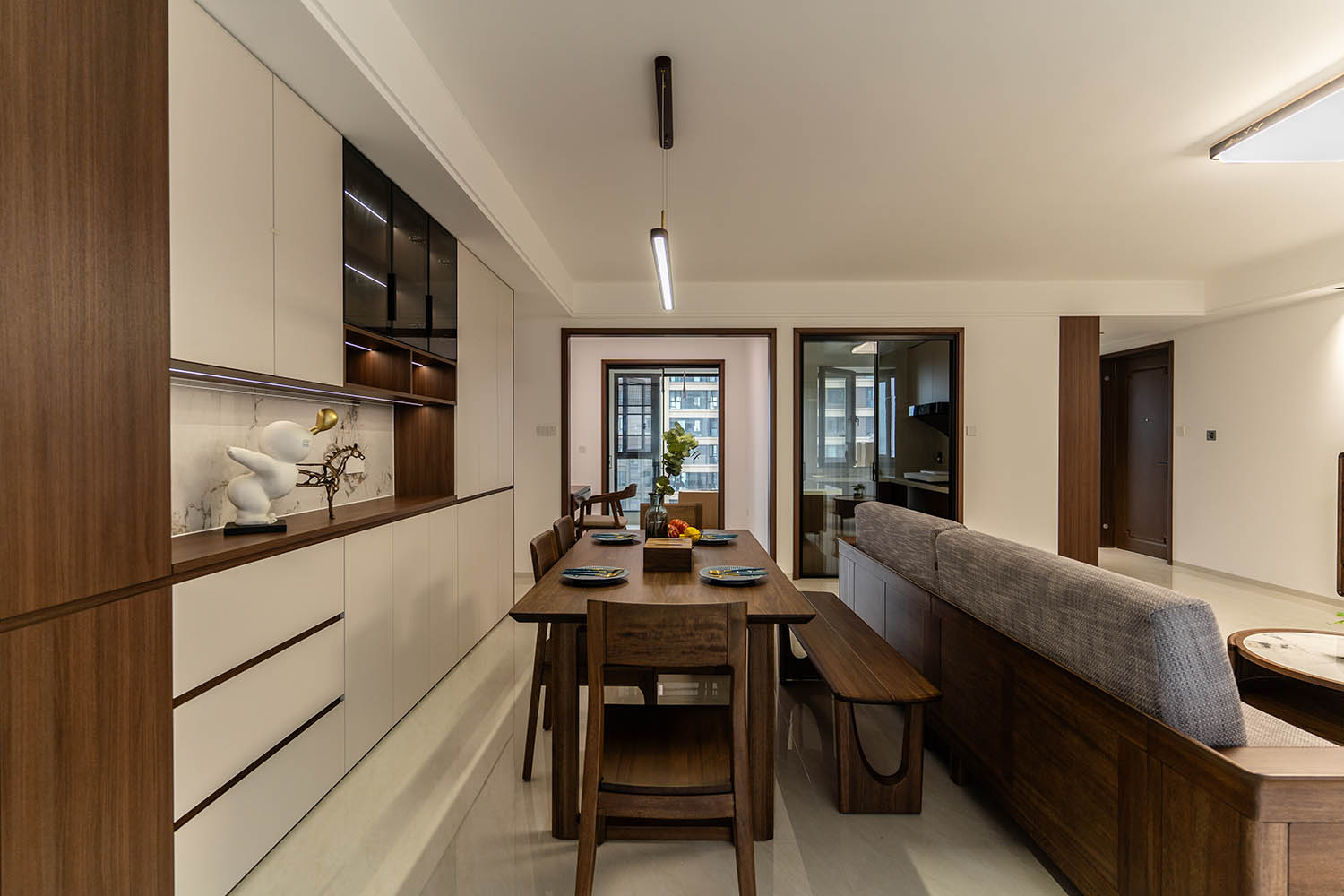 東方之神,舍傳統(tǒng)之形,讓古典美學(xué)在現(xiàn)代空間中煥發(fā)新生 新中式風(fēng)格以其典雅的氣質(zhì)、深厚的文化底蘊(yùn)和現(xiàn)代的舒適性,成為高端家居設(shè)計(jì)的首選。它巧妙地將中國(guó)傳統(tǒng)元素與現(xiàn)代生活需求相融合,創(chuàng)造出既有東方韻味又符合當(dāng)代審美的居住環(huán)境。 對(duì)于142平米的戶型,新中式風(fēng)格能充分發(fā)揮空間優(yōu)勢(shì),通過對(duì)稱布局、留白藝術(shù)和精致細(xì)節(jié),打造出充滿文化底蘊(yùn)與現(xiàn)代舒適的理想居所。 新中式風(fēng)格在建發(fā)央著142平的空間中,成功實(shí)現(xiàn)了傳統(tǒng)文化與現(xiàn)代生活的對(duì)話。它不僅僅是對(duì)古典元素的簡(jiǎn)單復(fù)制,更是對(duì)東方美學(xué)的當(dāng)代詮釋,讓居住者在現(xiàn)代舒適中感受傳統(tǒng)文化的魅力。 設(shè)計(jì)精髓在于對(duì)文化符號(hào)的精準(zhǔn)提煉、對(duì)空間意境的營(yíng)造和對(duì)現(xiàn)代生活需求的滿足。只有經(jīng)過如此深思熟慮的設(shè)計(jì),才能打造出既有文化底蘊(yùn)又符合當(dāng)代生活需求的理想居所。
