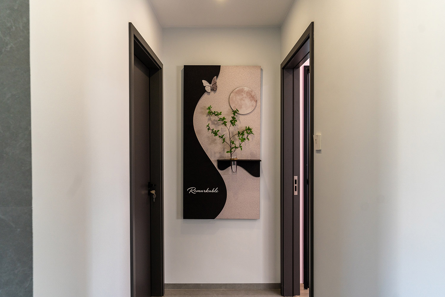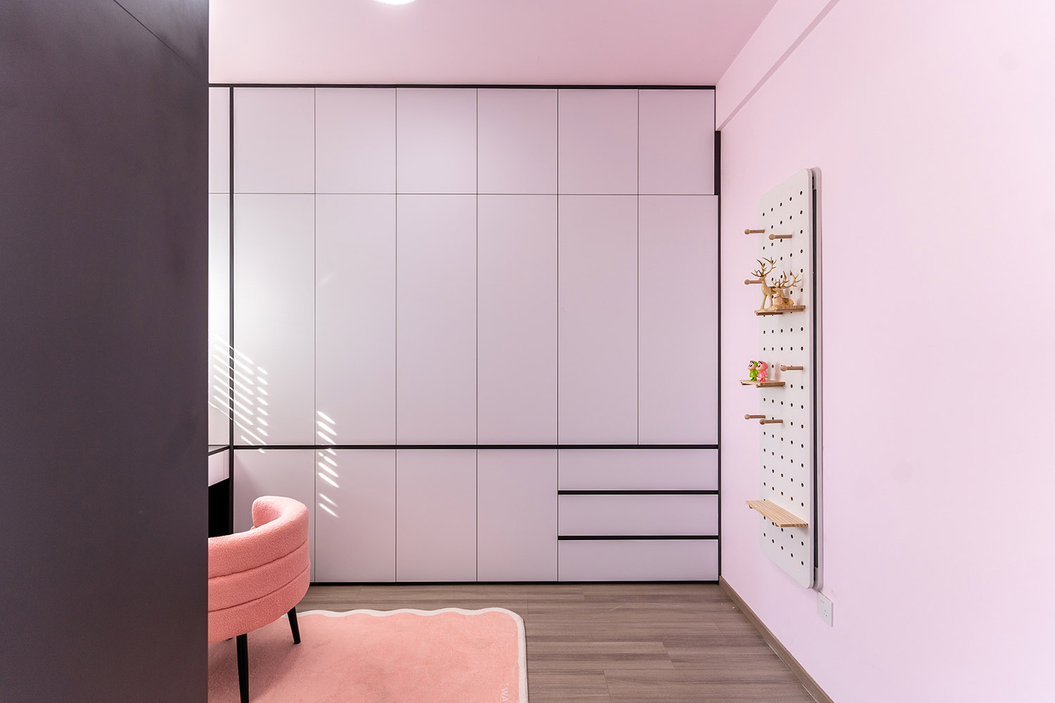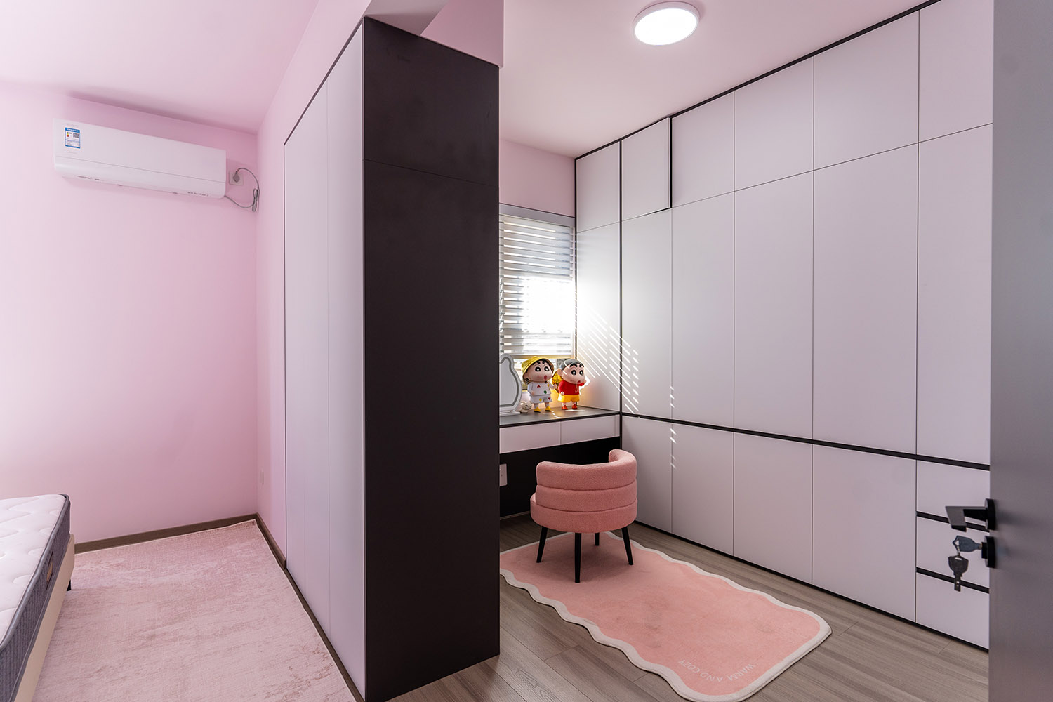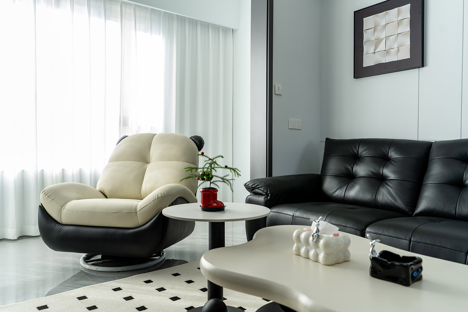 本案以“像素重組” 為核心理念,將136㎡的空間視作一個(gè)可以拆解與重構(gòu)的光影實(shí)驗(yàn)室。設(shè)計(jì)放棄所有裝飾性色彩,通過(guò)黑、白、灰三種基色的極致比例控制、不同材質(zhì)在單一色系下的質(zhì)感博弈以及精密計(jì)算的光影路徑,構(gòu)筑一個(gè)理性冷靜又充滿(mǎn)感知張力的未來(lái)居所。這里不是色彩的缺失,而是將色彩解構(gòu)為更本質(zhì)的光、影與肌理,讓居住回歸材料與空間的本質(zhì)對(duì)話(huà)。 通過(guò)極致的黑白灰控制與材料實(shí)驗(yàn),探索了現(xiàn)代居住的一種可能性:當(dāng)色彩被剝離,空間的形式、光影與質(zhì)感便被無(wú)限放大,人對(duì)空間的感知也因此變得更為敏銳和直接。它并非一個(gè)“冷淡”的空間,而是一個(gè)高度凝練、充滿(mǎn)理性之美并能包容居住者所有情緒與生活的“寧?kù)o背景板”。在這里,一幅畫(huà)、一株綠植、一本書(shū),乃至居住者本身,都將成為空間中最生動(dòng)、最富色彩的焦點(diǎn)。