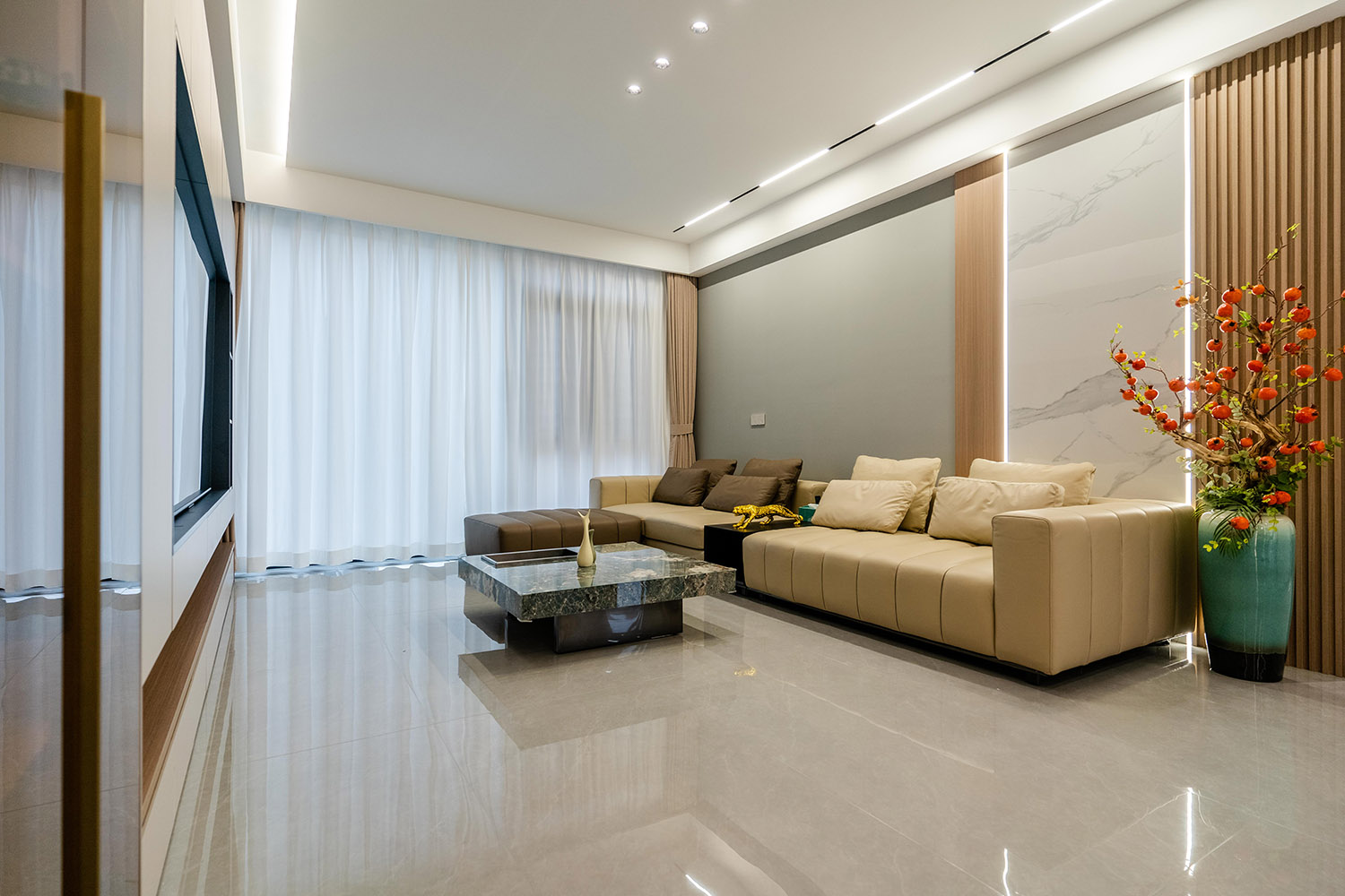 現(xiàn)代輕奢風(fēng)格,是在簡(jiǎn)潔的現(xiàn)代框架上,通過(guò)精致的細(xì)節(jié)與克制的華麗,構(gòu)筑出理性與感性并存的居住美學(xué)。在139平米的空間里,它能將功能主義的實(shí)用與輕奢主義的優(yōu)雅完美結(jié)合,打造一個(gè)兼具都市效率、家庭溫度與圈層品位的精致居所。 本案的核心設(shè)計(jì)理念是 “奢于細(xì)節(jié),雅于克制” 。它建立在現(xiàn)代主義堅(jiān)實(shí)的功能與結(jié)構(gòu)基礎(chǔ)之上,通過(guò)材質(zhì)、色彩與光影的精細(xì)化點(diǎn)綴,賦予空間內(nèi)在的溫度與外在的辨識(shí)度。設(shè)計(jì)旨在營(yíng)造一種“低調(diào)的矚目感”,讓奢華不流于表面,而是內(nèi)化于每一處精良的用料、精準(zhǔn)的比例與舒適的體驗(yàn)之中。