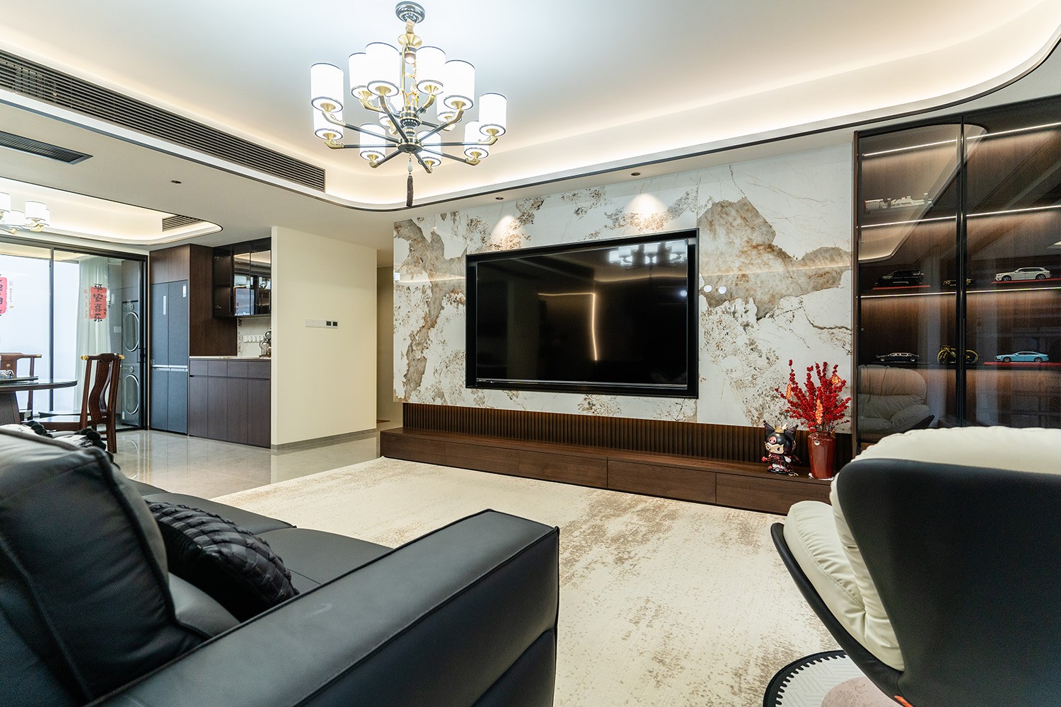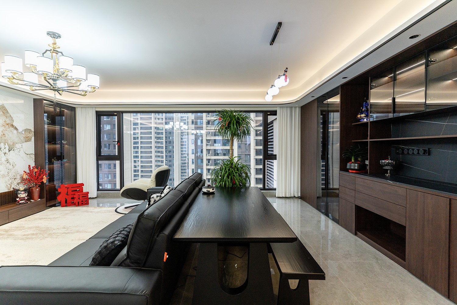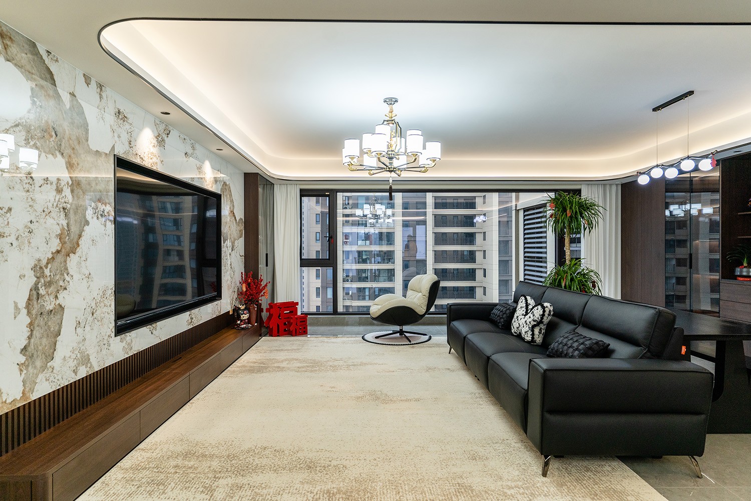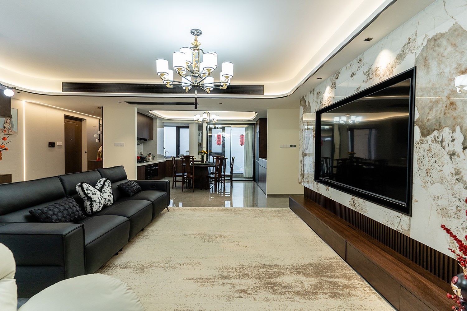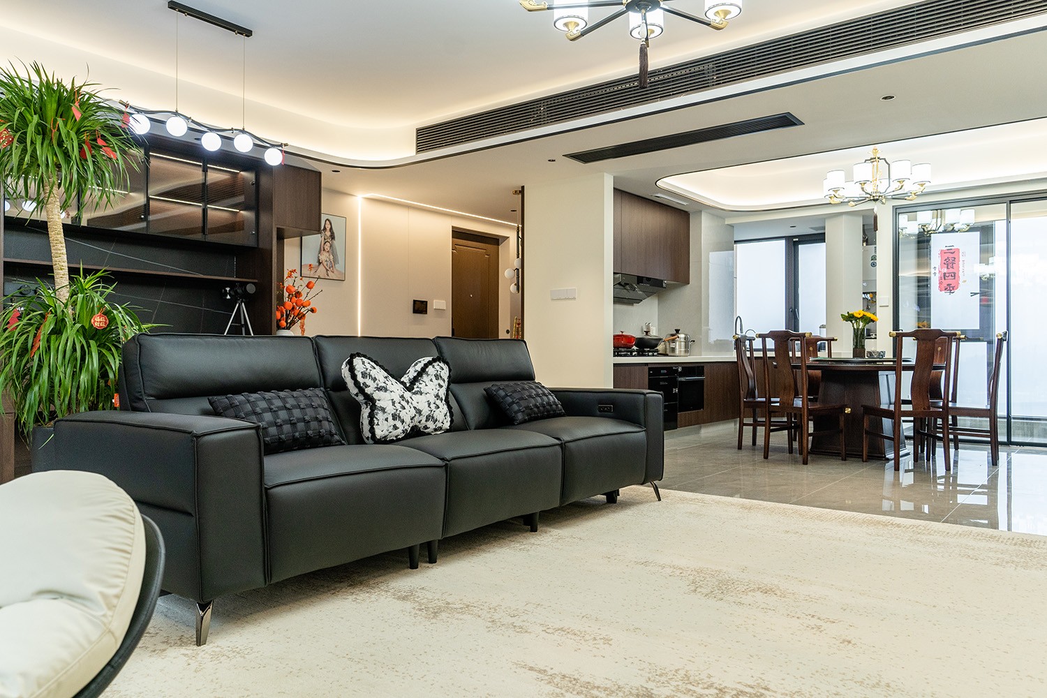 新中式風(fēng)格是東方哲學(xué)與現(xiàn)代生活的詩意融合。它不拘泥于符號的堆砌,而是通過對空間意境的營造、材質(zhì)肌理的對話與文化神韻的提煉,構(gòu)筑一個沉穩(wěn)大氣、清雅含蓄的居住空間。本案以建發(fā)央著142平米的改善型戶型為載體,深度解析如何將傳統(tǒng)文脈的精髓,轉(zhuǎn)化為一個可供當(dāng)代家族棲居、傳承與品鑒的雅致家園。 本案的核心設(shè)計理念是 “古韻今形,心居合一” 。旨在讓傳統(tǒng)的東方美學(xué),以一種更符合現(xiàn)代人生活習(xí)慣與審美的方式“活化”于空間之中。設(shè)計摒棄繁復(fù)雕飾,轉(zhuǎn)而通過留白的智慧、框景的手法、天然材質(zhì)的并置,于無形中勾勒出東方意蘊(yùn)。最終營造的,是一個能讓身心沉靜、讓家族情感凝聚的“文化容器”與“精神家園”。