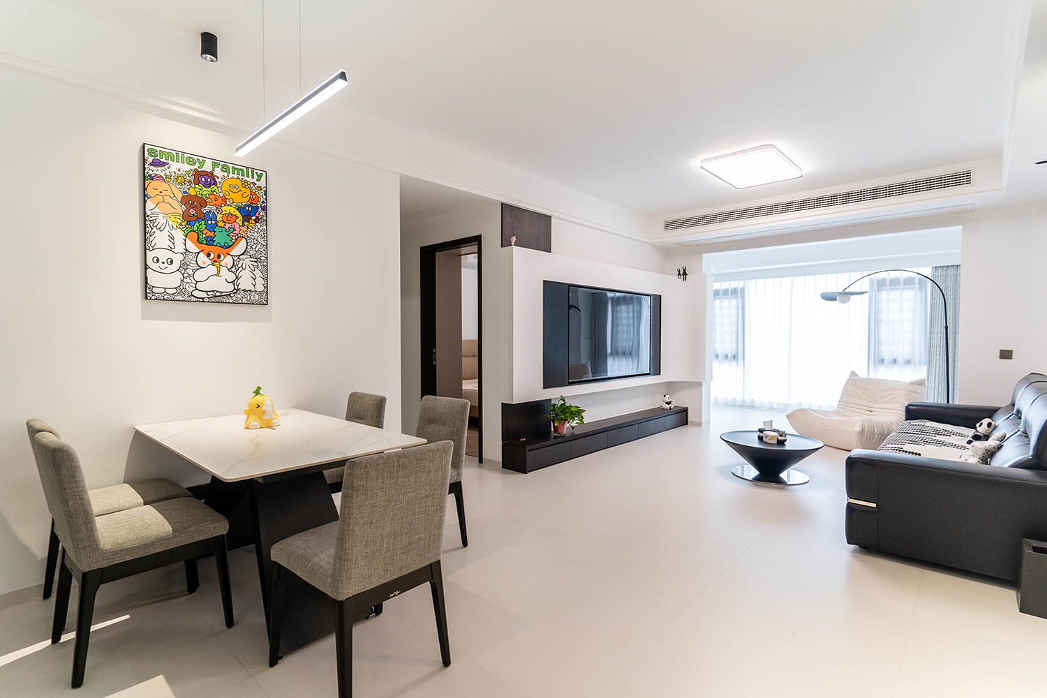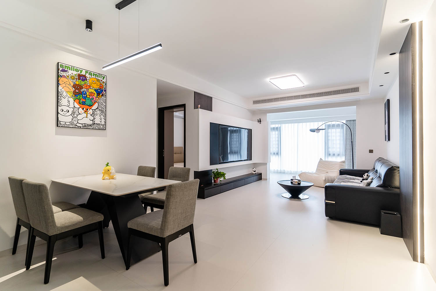 設計理念 本案以“現代極簡”為核心理念,強調“少即是多”的設計哲學,通過干凈的線條、克制的色彩與高效的空間規(guī)劃,打造一個兼具功能性與美學價值的居住環(huán)境。設計注重光影互動、材質對比與人性化細節(jié),滿足都市精英對簡約、舒適與品質生活的追求。 本案通過極簡的視覺語言與高效的空間利用,實現“形式追隨功能”的設計本質,為居住者提供一個寧靜、有序且充滿現代美學的理想居所。